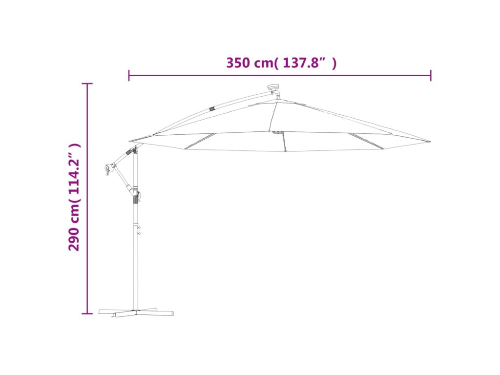 Tento elegantní konzolový slunečník s LED světly vám poskytne stín, a ochrání vás tak před sluníčkem a jeho škodlivým UV zářením.