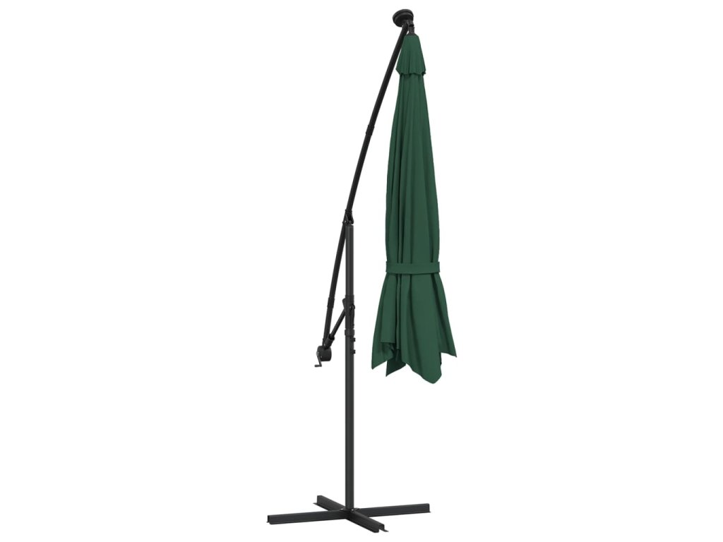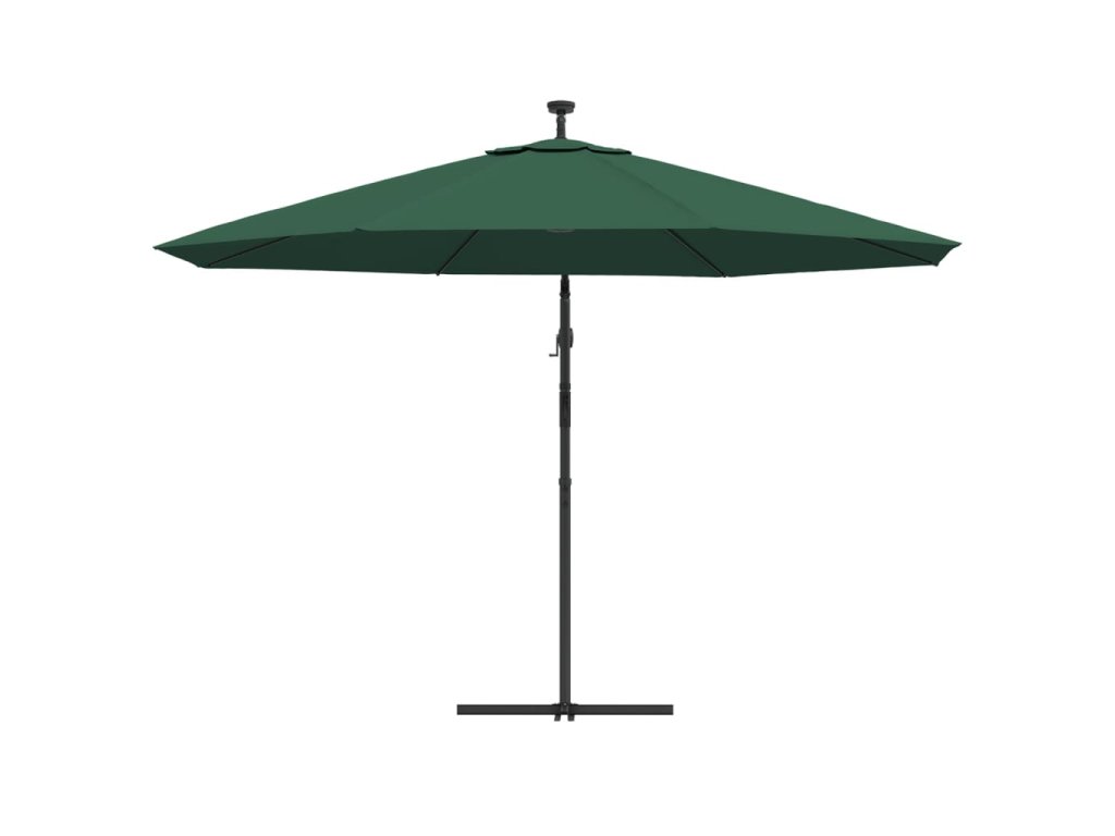 Stříška slunečníku je vyrobena z polyesterové tkaniny, která nepropouští škodlivé UV záření a nevybledne, a poskytne vám optimální ochranu před sluncem. Navíc se snadno čistí. Je vybavena 24 solárně napájenými LED světly, která po západu slunce automaticky osvětlí váš venkovní prostor a navodí v něm útulnou a romantickou atmosféru. Součástí je také pevná křížová základna pro větší stabilitu. Exkluzivní konstrukce tohoto slunečníku vám umožní naklonit ho tak, aby blokoval slunce, jak klesá za obzor. Silná kovová tyč s 8 odolnými žebry zajišťuje, že se slunečník nehýbe a hodně toho vydrží. Náš zahradní slunečník disponuje klikovým mechanismem, což znamená, že se snadno otevírá i zavírá. Sestavení výrobku je snadné.