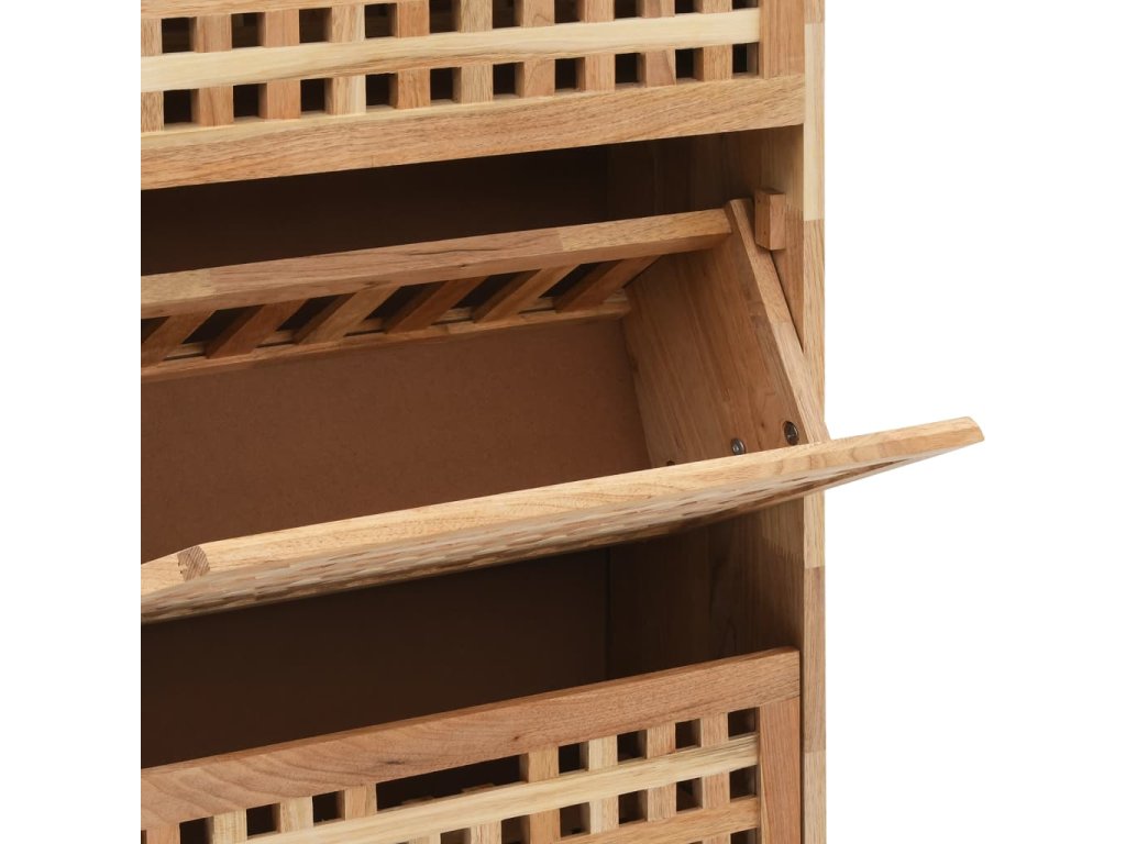 Dřevěný botník se stylovým mřížkovým designem bude skvěle doplňovat váš interiér a vaše boty v něm budou vždy uspořádané a dobře větrané.