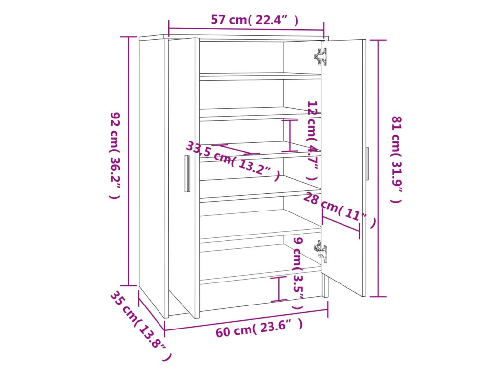 Botník je vyrobený z kvalitního kompozitního dřeva, které mu propůjčuje nejen elegantní vzhled, ale také výtečnou stabilitu a odolnost. Dvířka vám umožní uschovat si obuv hezky uvnitř, kde nebude na očích. Skříňka je navíc poměrně velká a poskytne vám místo na mnoho párů bot.