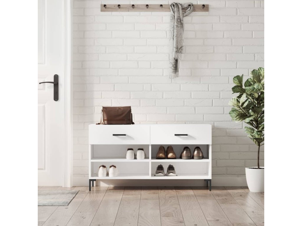 Botník bílý s vysokým leskem 102 x 35 x 55 cm kompozitní dřevo