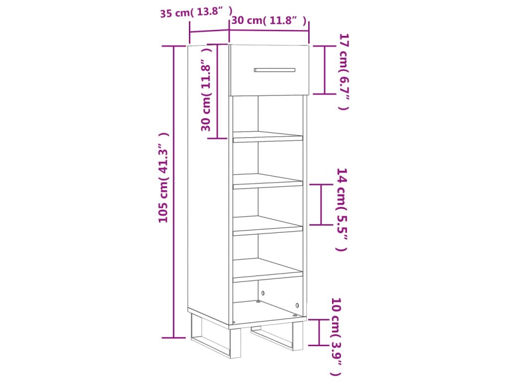 - Spousta úložného prostoru: Botník má 1 zásuvku a 5 otevřených přihrádek, poskytuje tedy spoustu místa na uložení všech typů obuvi.