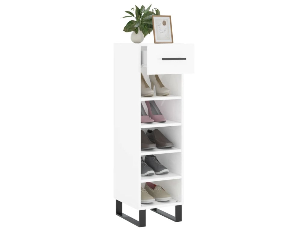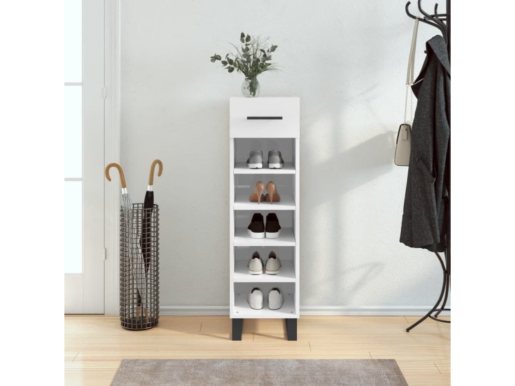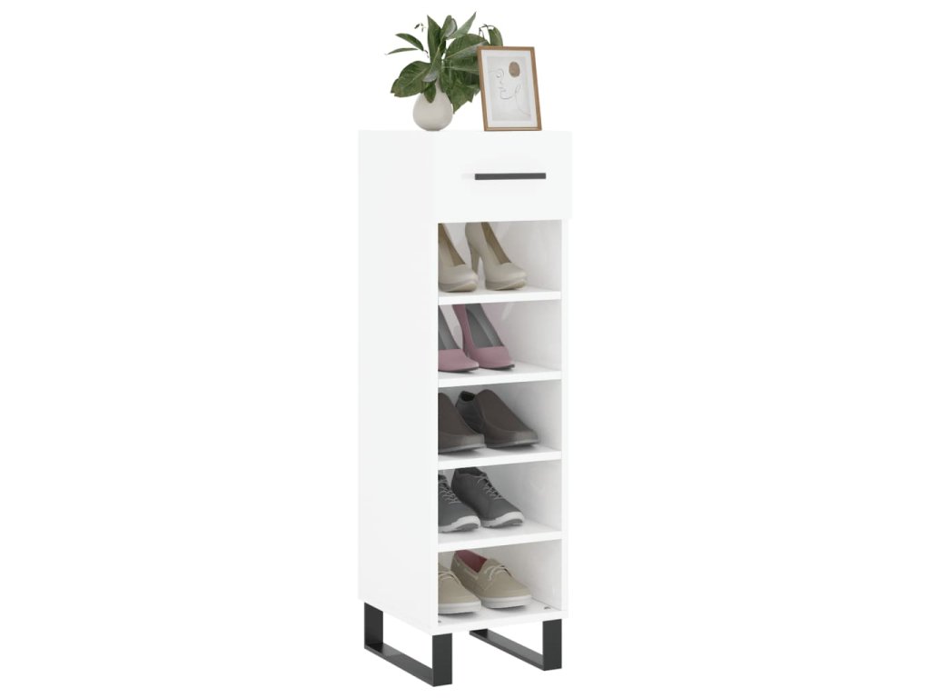 Botník bílý s vysokým leskem 30 x 35 x 105 cm kompozitní dřevo