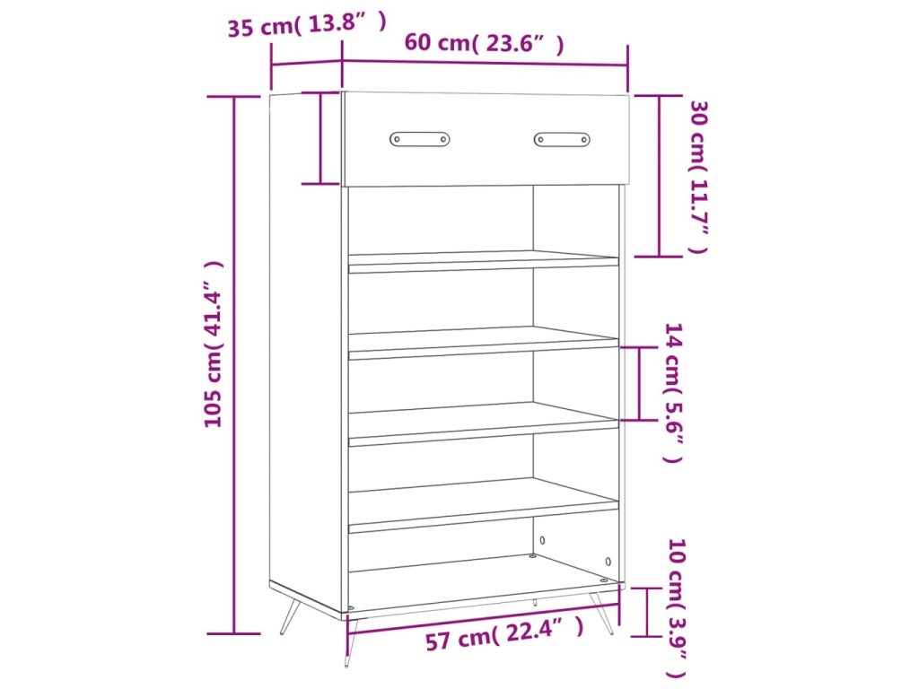 - Spousta úložného prostoru: Botník má 1 zásuvku a 5 otevřených přihrádek, poskytuje tedy spoustu místa na uložení všech typů obuvi.