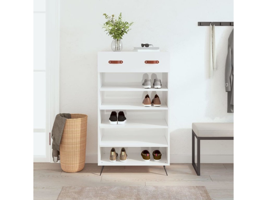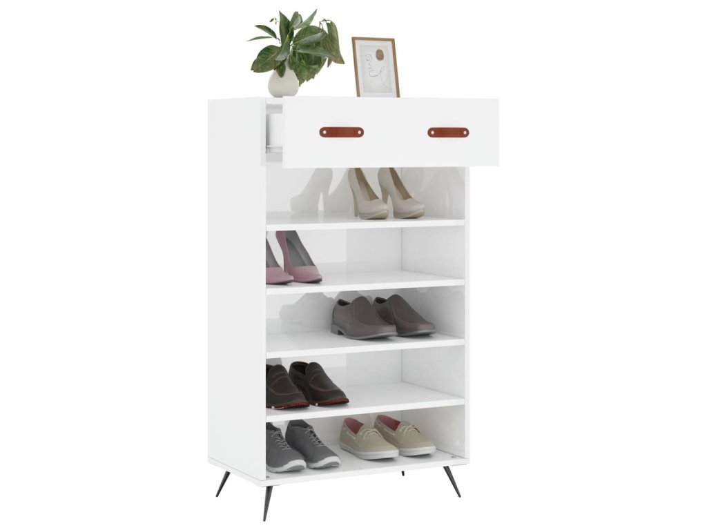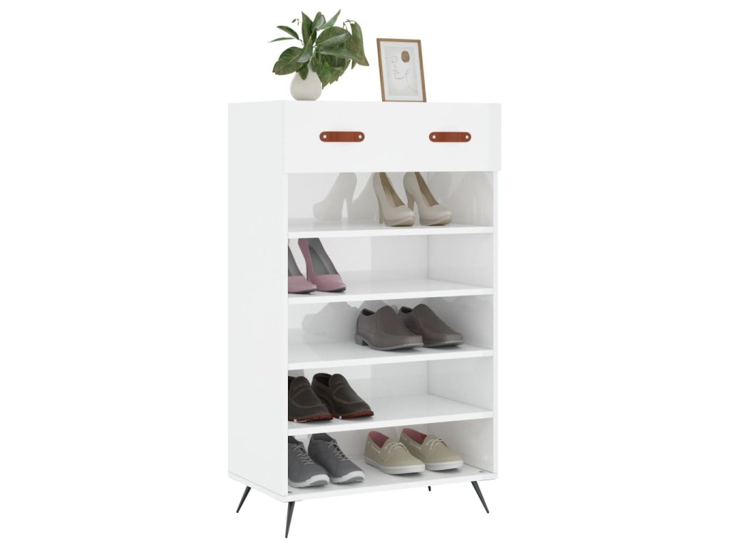 Botník bílý s vysokým leskem 60 x 35 x 105 cm kompozitní dřevo