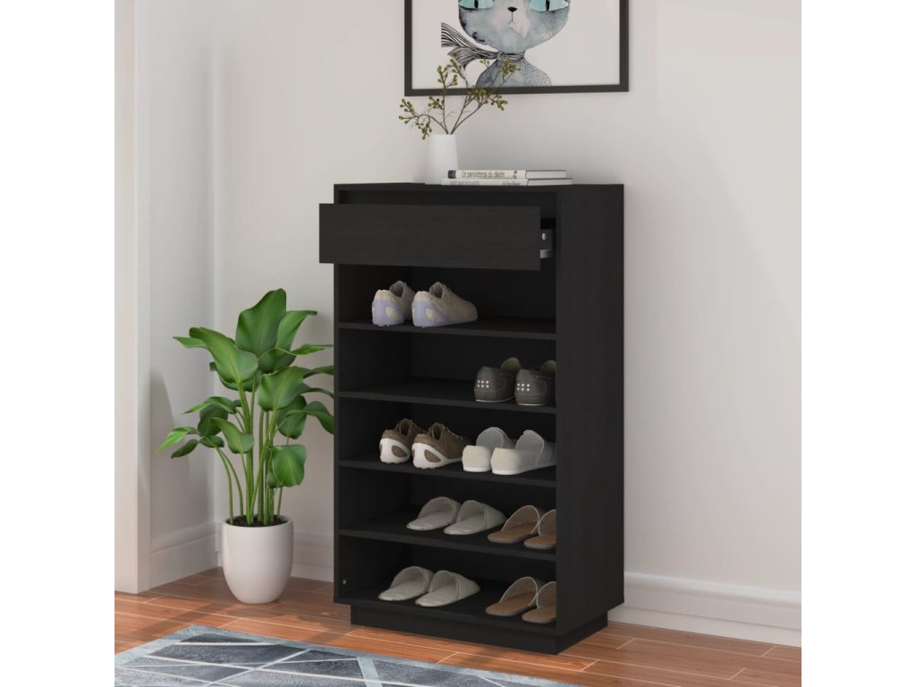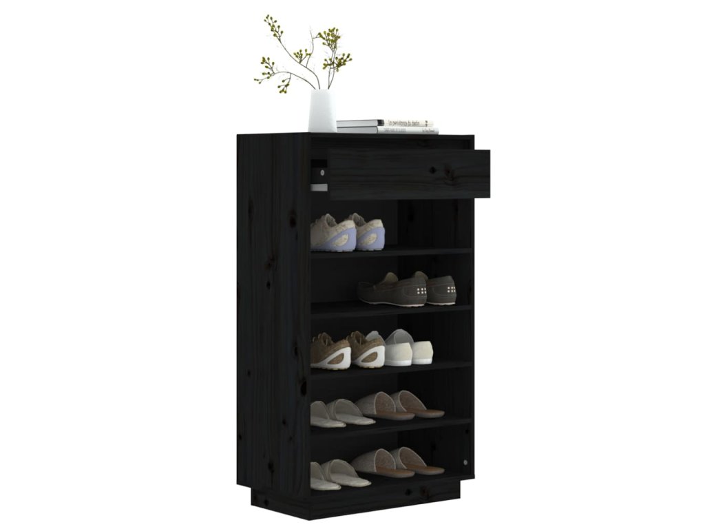 Botník černý 60 x 34 x 105 cm masivní borové dřevo