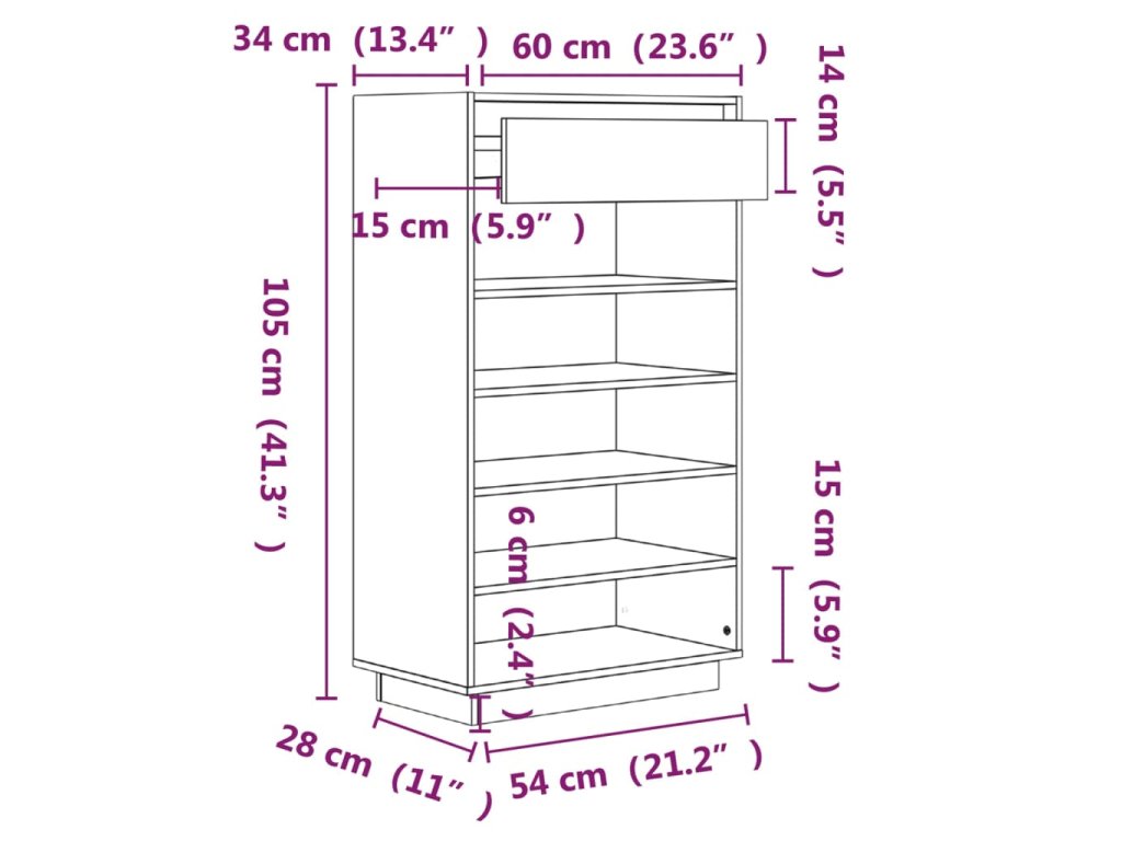 Úložná skříňka je zhotovena z masivního borového dřeva, je tedy bytelná a stabilní. Regál na boty vám poskytne spoustu místa pro přehledné uložení vašich bot, kde je budete mít pěkně po ruce. Stabilní horní deska vám navíc poslouží k vystavení dekorativních předmětů, jako jsou fotorámečky nebo pokojové rostliny.