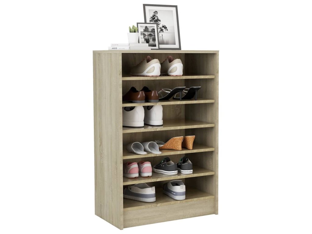 Botník je vyroben z kvalitního kompozitního dřeva, které mu dodává rafinovaný vzhled, stabilitu i odolnost. Je vybaven 7 policemi pro přehledné uložení bot a pantoflí. Tento organizér na boty se navíc snadno čistí vlhkým hadříkem.