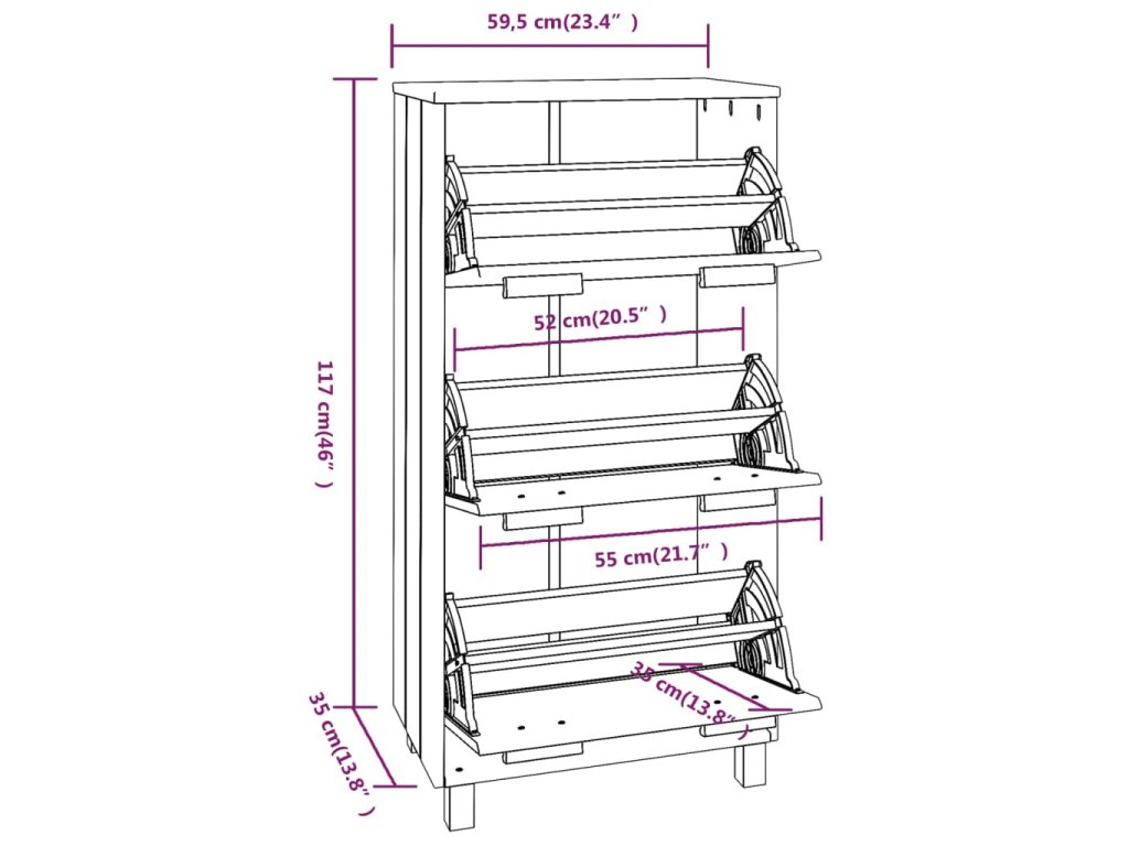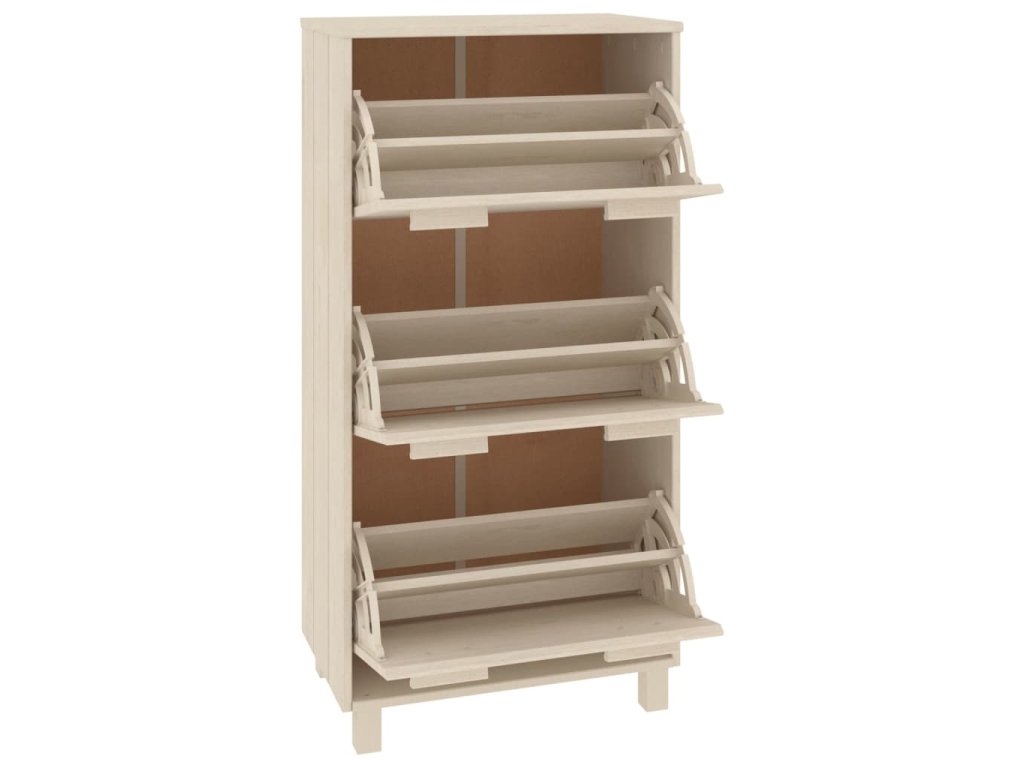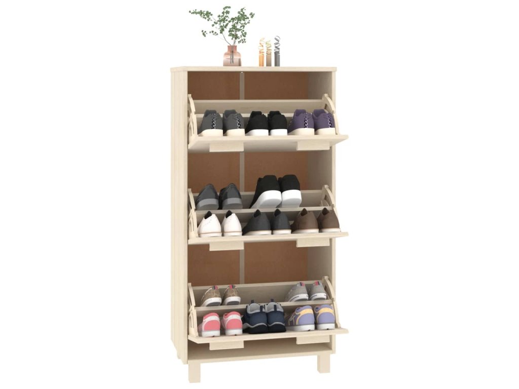 Regál na boty je zhotovený z masivního borového dřeva, takže je stabilní a robustní. Obsahuje 3 výklopné zásuvky, poskytne vám tedy spoustu prostoru pro uložení vaší obuvi a zároveň ji ochrání před prachem. S tímto praktickým botníkem, už se nebudete muset zlobit, že máte boty rozházené po celé chodbě.