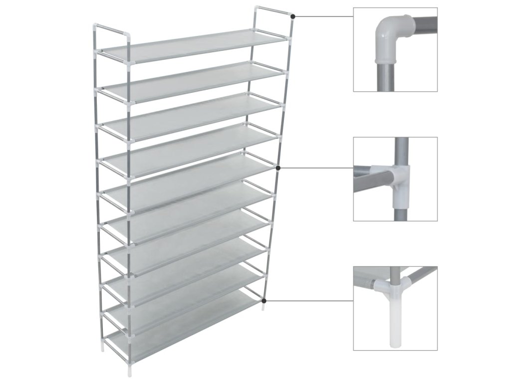 Má trubkový kovový rám, který je lehký, ale přitom robustní, lze jej tedy snadno přemisťovat a zároveň je i velmi stabilní. Má deset prostorných polic, vyrobených z netkané textilie, které vám poskytnou spoustu prostoru pro přehledné ukládání vašich bot tak, aby vám nepřekážely.