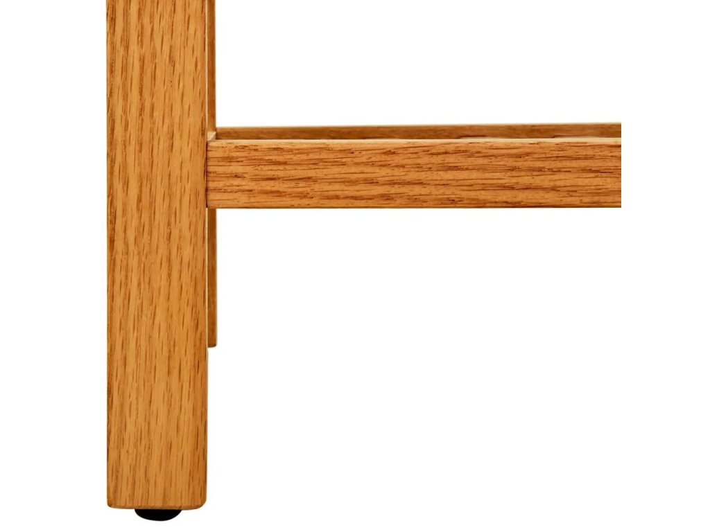 Tento dřevěný botník byl precizně vyroben z odolného masivního dubu a je velmi funkční. Vzhledem ke svému kompaktnímu designu a rukojetím zabere jen velmi málo místa a dá se snadno přemisťovat. Otevřené police jsou ideální pro dobré větrání vašich bot. S tímto botníkem už se nebudete muset rozčilovat, že máte boty rozházené po celém domě.