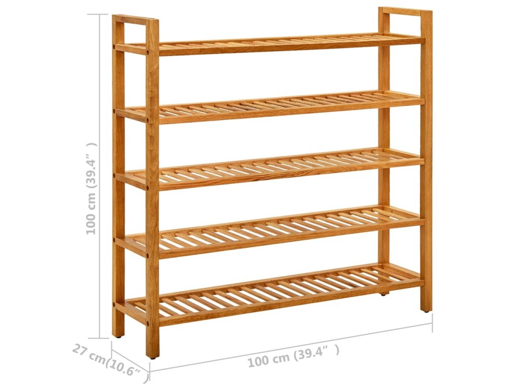Botník s 5 policemi 100 x 27 x 100 cm masivní dubové dřevo