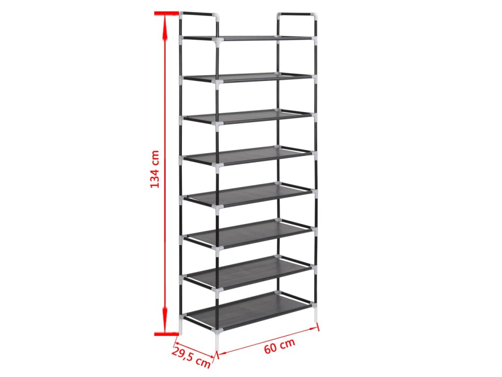 Má trubkový kovový rám, který je lehký, ale přitom robustní, lze jej tedy snadno přemisťovat a zároveň je i velmi stabilní. Má osm prostorných polic, vyrobených z netkané textilie, které vám poskytnou spoustu prostoru pro přehledné ukládání vašich bot tak, aby vám nepřekážely.