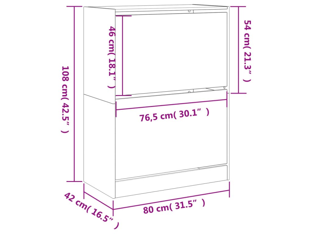 Botník se 2 výklopnými zásuvkami dub sonoma 80 x 42 x 108 cm