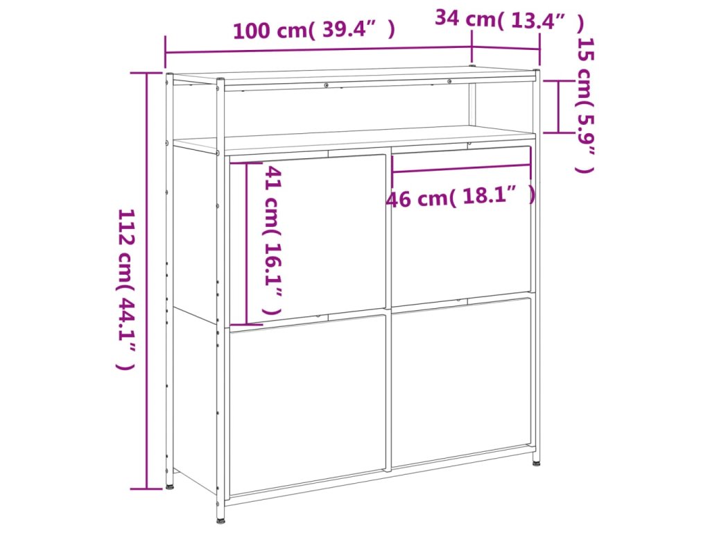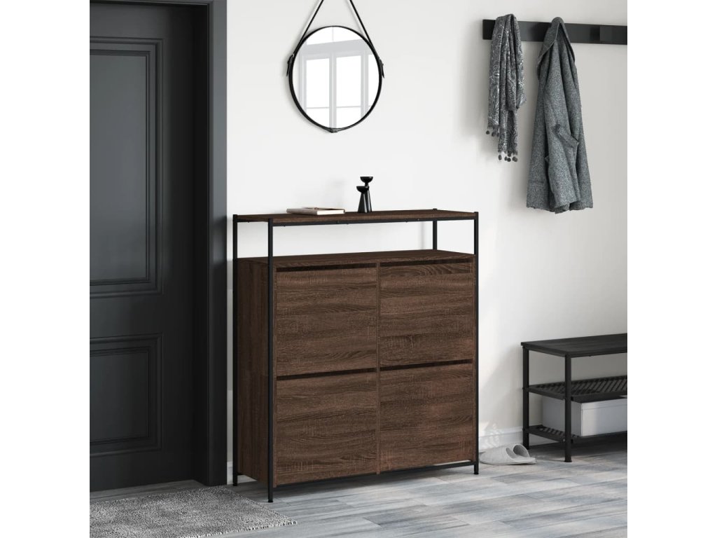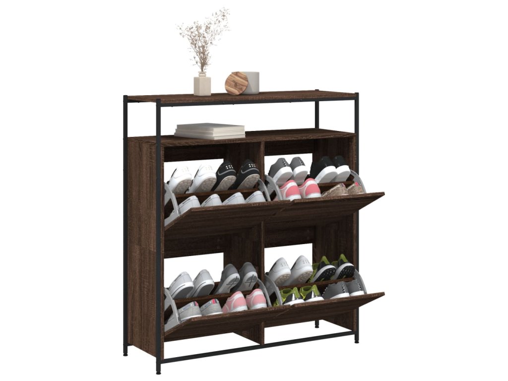Botník se 4 výklopnými zásuvkami hnědý dub 100 x 34 x 112 cm