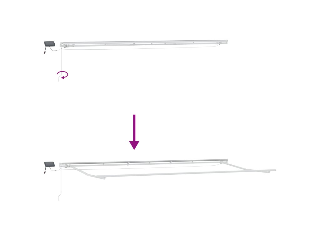 - Kompletní systém markýzy Tato zatahovací markýza obsahuje vše potřebné k použití. Ruční nastavovací mechanismus usnadňuje otevření nebo zavření clony podle potřeby. Navíc integrovaná LED osvětlení prodlouží možnost používání do večera, což z této markýzy činí skvělý doplněk do jakéhokoli venkovního prostoru.