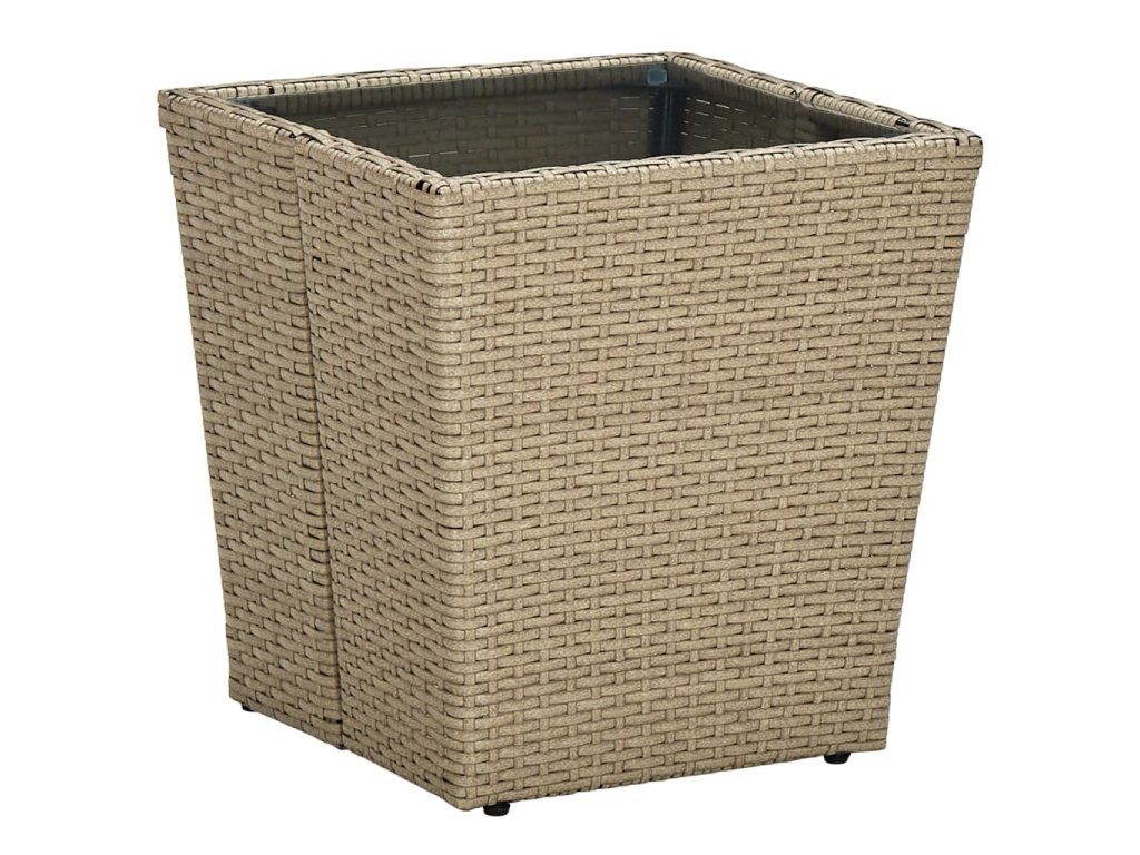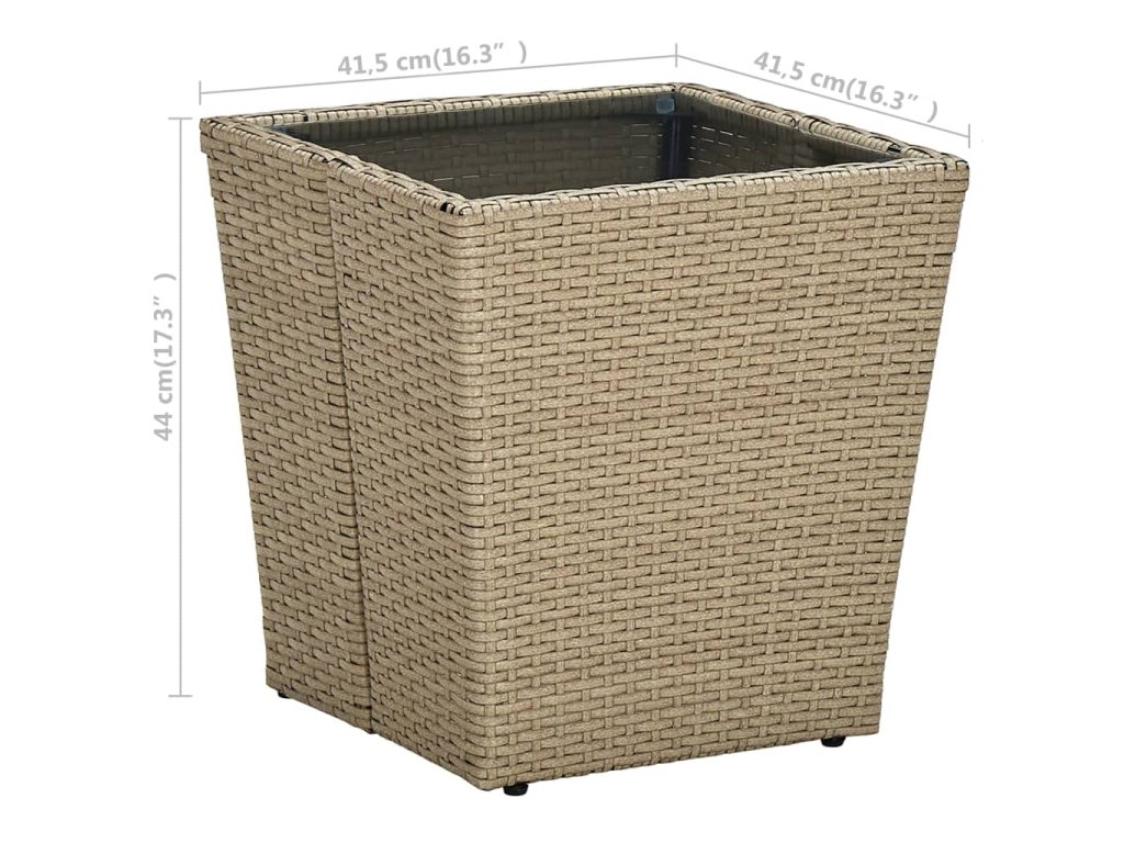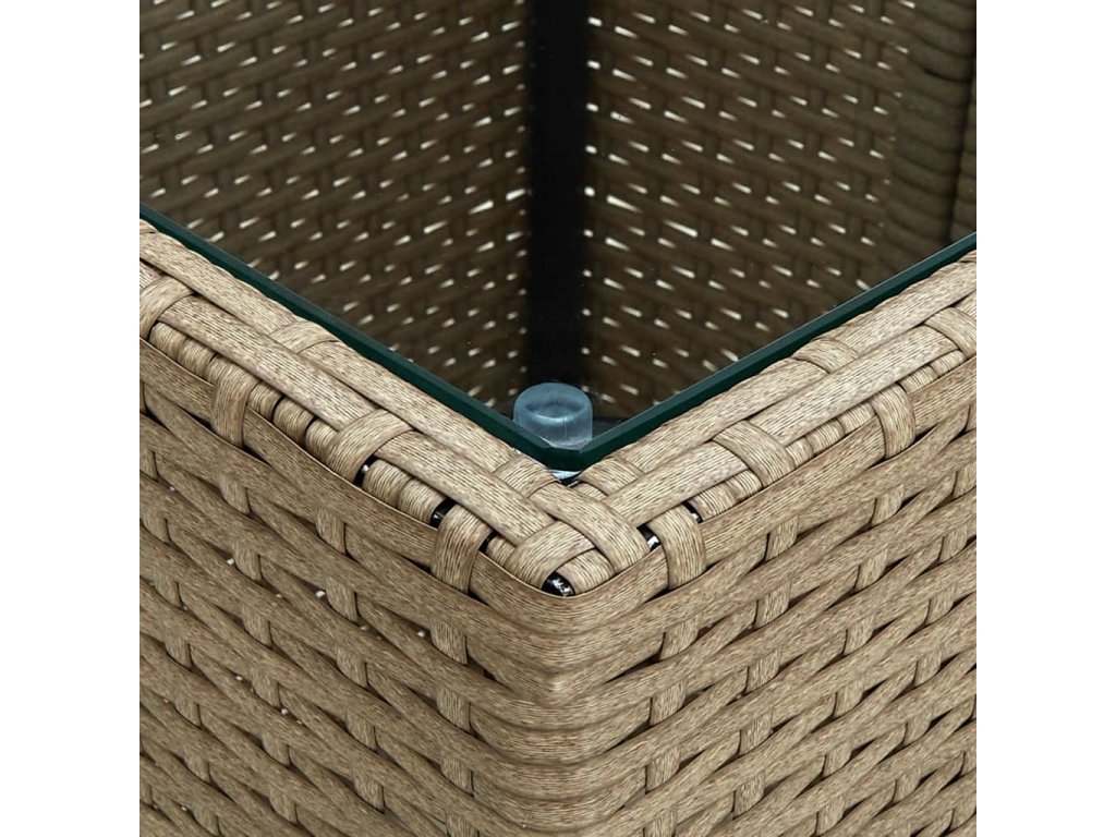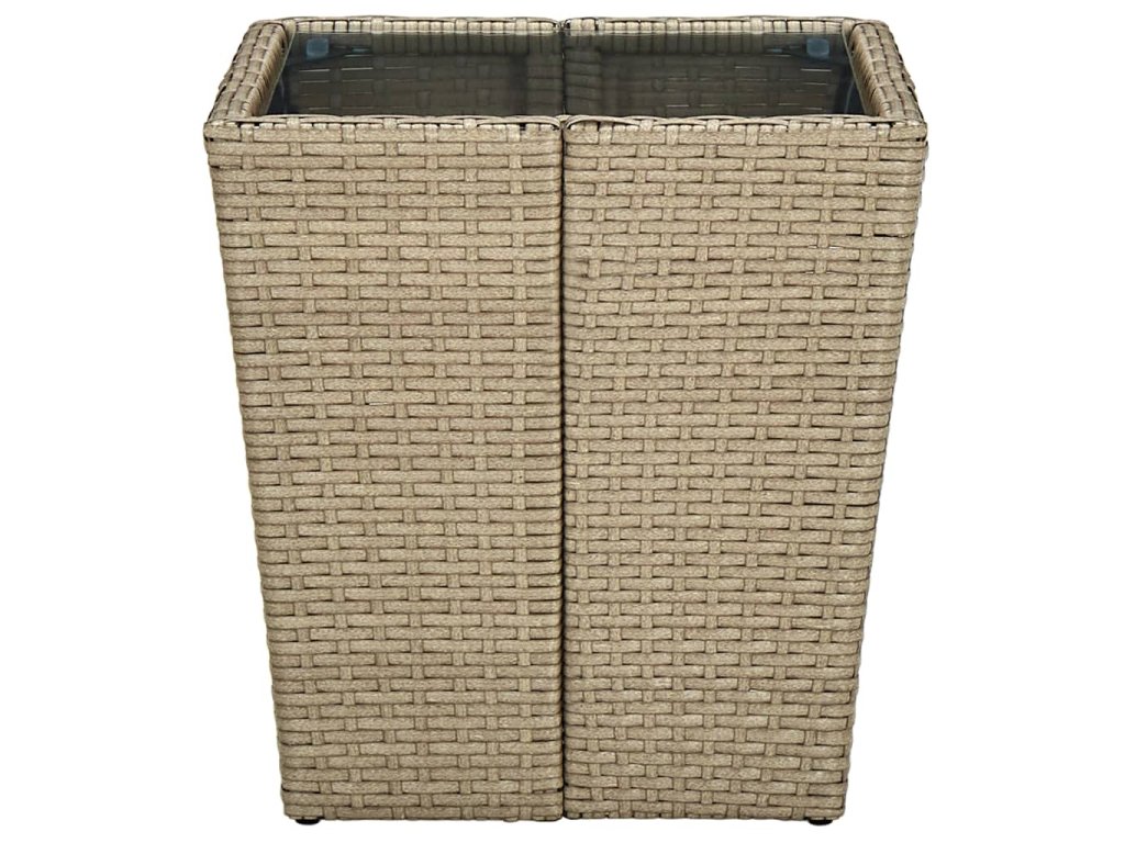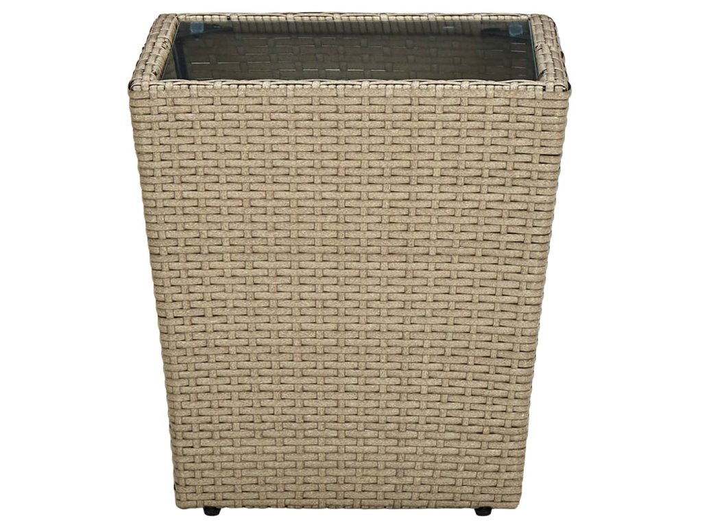 Čajový stolek béžový 41,5x41,5x44 cm polyratan a tvrzené sklo