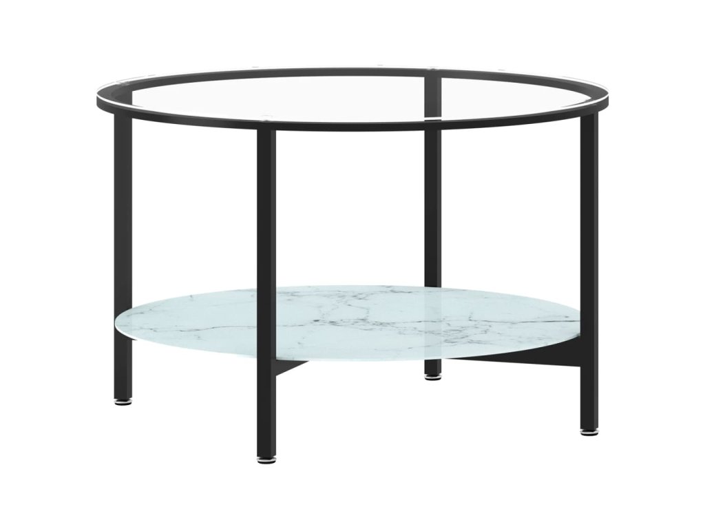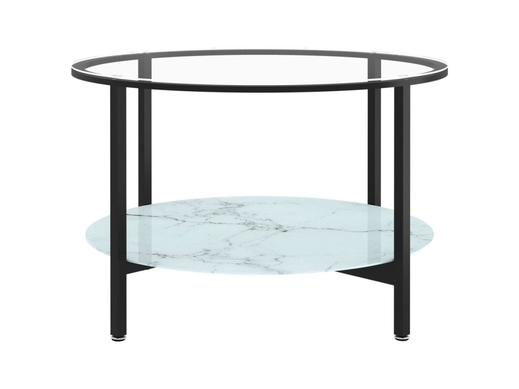Čajový stolek černý a bílý mramor 70 cm tvrzené sklo
