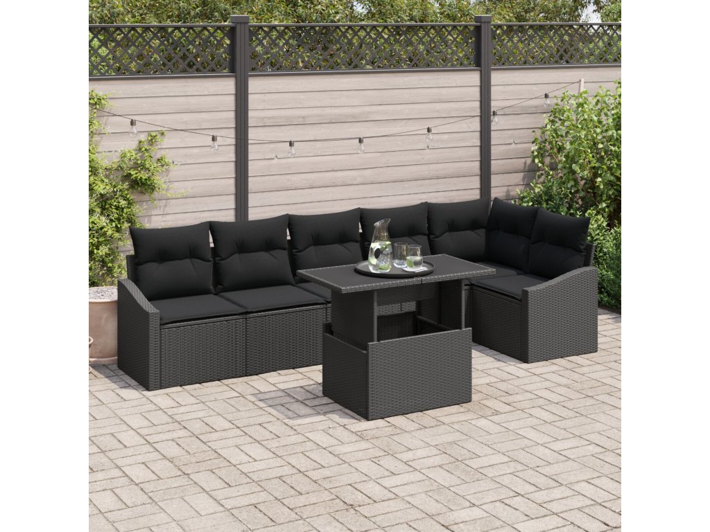 Sada zahradních pohovek s polštářem 7 pcs Černá polyratan