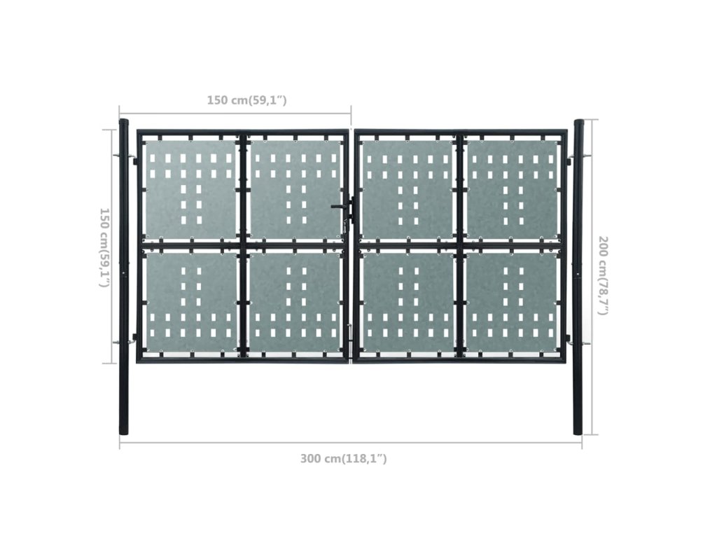 Pozinkované pláty s dekorativním dírkovaným vzorem jsou zesíleny rámem, takže vaší zahradě bude branka poskytovat vysoký stupeň bezpečí, a zároveň vytvářet úžasný vstup na váš pozemek. Je vyrobená z vysoce odolné oceli a opatřená práškovým nástřikem proti rzi a korozi.
