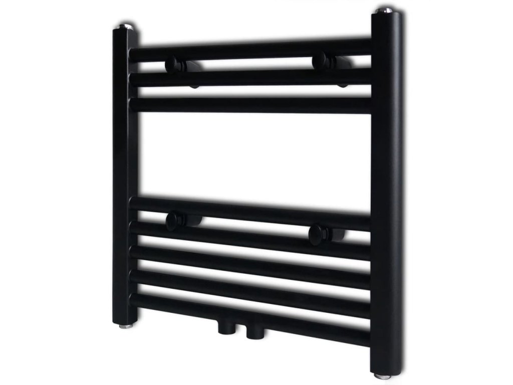 Černý žebříkový radiátor na ručníky rovný ústřední topení 480 x 480 mm