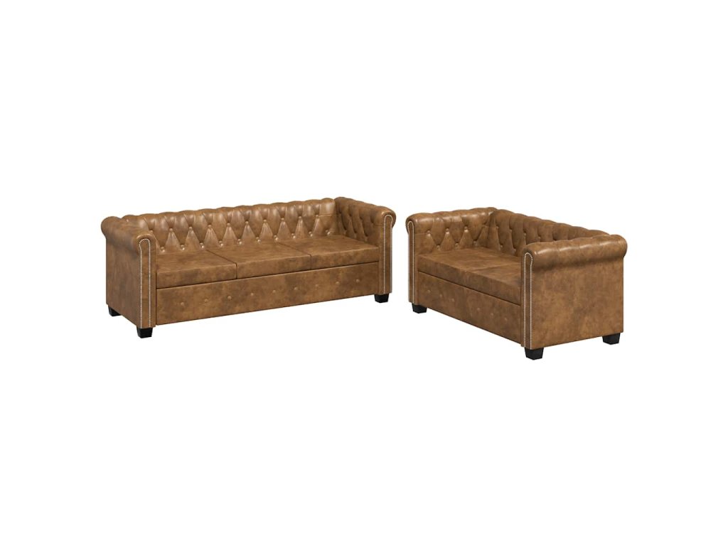Chesterfield sada 2místné a 3místné pohovky hnědá