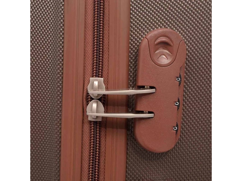 Tento set skořepinových cestovních kufrů má skořepinu z odolného ABS a bezpečnostní zámek, který ochrání vaše věci. Vnitřní fixační popruhy zaručí, že vaše věci zůstanou dobře uspořádané a nehnou se z místa. Vedle ergonomické teleskopické rukojeti je každý kufr opatřen také dvěma držadly na přenášení (nahoře a po straně) a čtyřmi kolečky otočnými o 360 stupňů.
