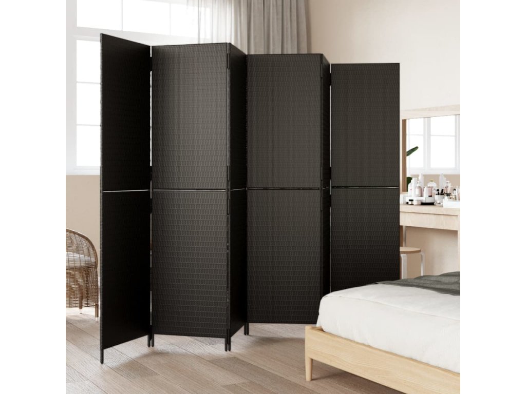 Dělicí stěna 6 panelů černá polyratan