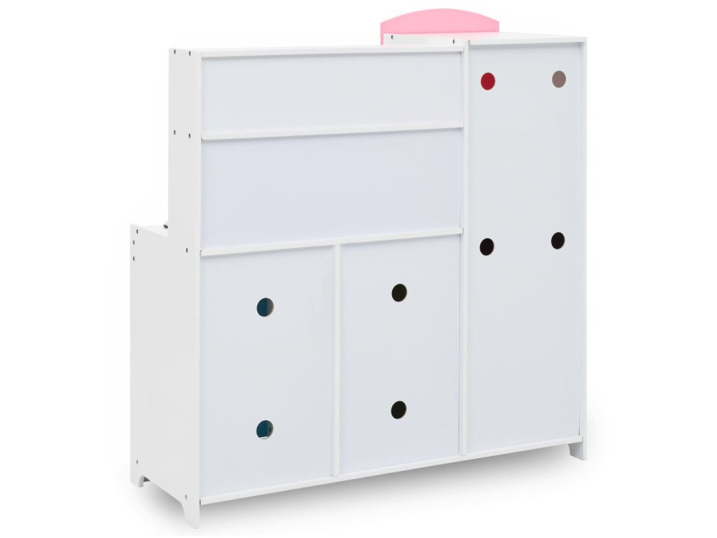 Kuchyňka je vybavená vysokou lednicí a kompletní sadou realistického kuchyňského vybavení a spotřebičů, jako jsou sporák, dřez, mikrovlnná trouba atd. Během hry se tak vaši nejmenší seznámí s principy týmové spolupráce, komunikace a naučí se i udržovat pořádek a mnoho dalšího! Kuchyňka je vyrobená z MDF, takže je velmi odolná a stabilní.