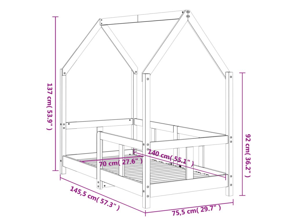 - Praktický design: Dětská postel je chytře navržena s rámem, kam můžete pověsit závěsy a vytvořit tak pro vaše dítě více soukromí. Slouží nejen jako šikovný prostor na spaní, ale také jako místo pro vaše děti, kde si mohou hrát a užívat si spoustu zábavy.