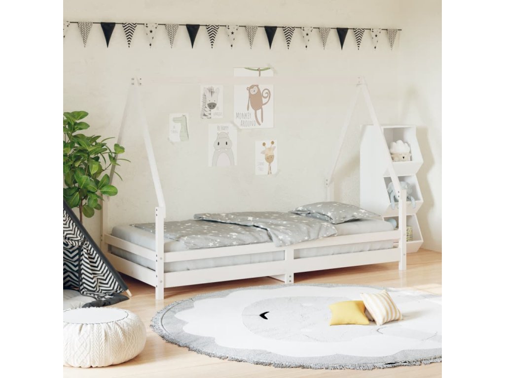 Dětská postel bílá 90 x 190 cm masivní borové dřevo