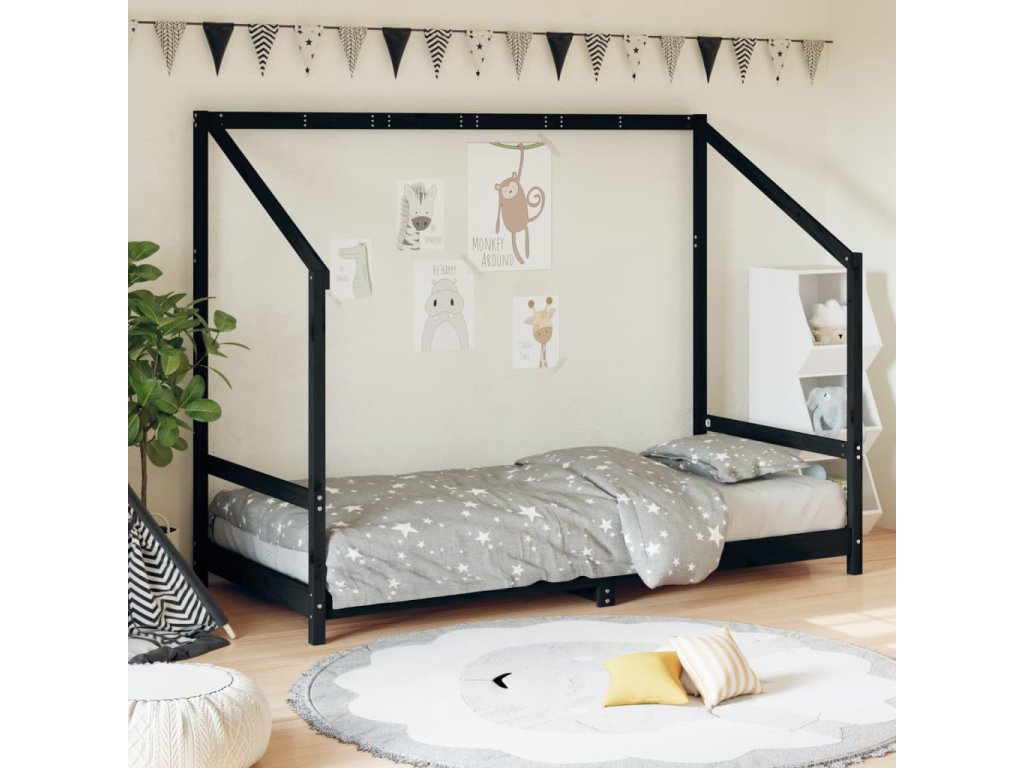 Dětská postel černá 90 x 190 cm masivní borové dřevo