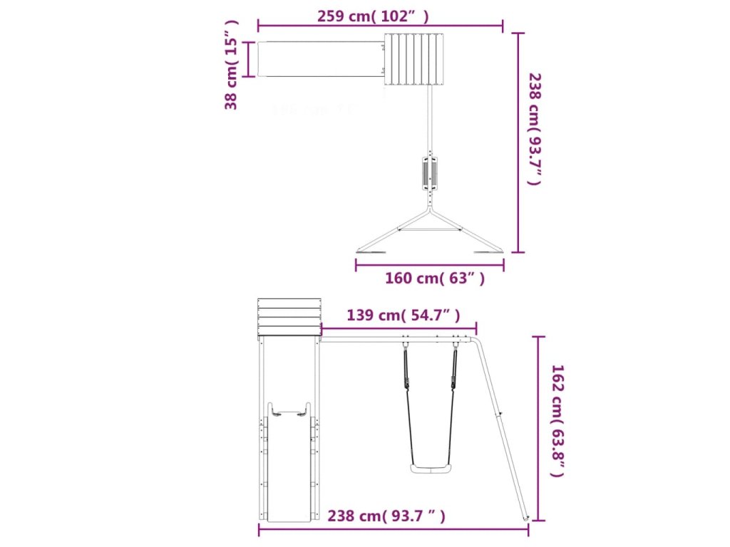 - Stabilní a robustní rám: Dřevěný rám zahradní věže zajišťuje mimořádnou pevnost a stabilitu. Nohy dětské houpačky ve tvaru písmene A navíc zajišťují potřebnou rovnováhu.
