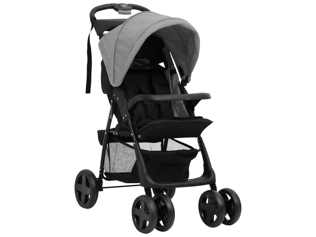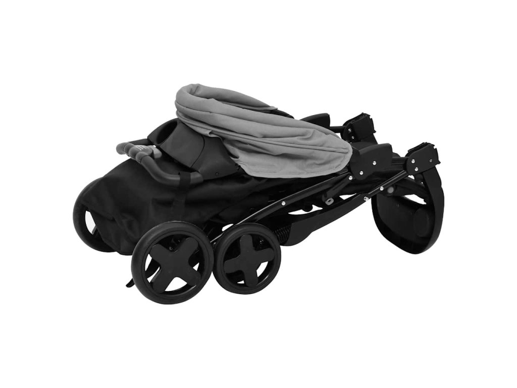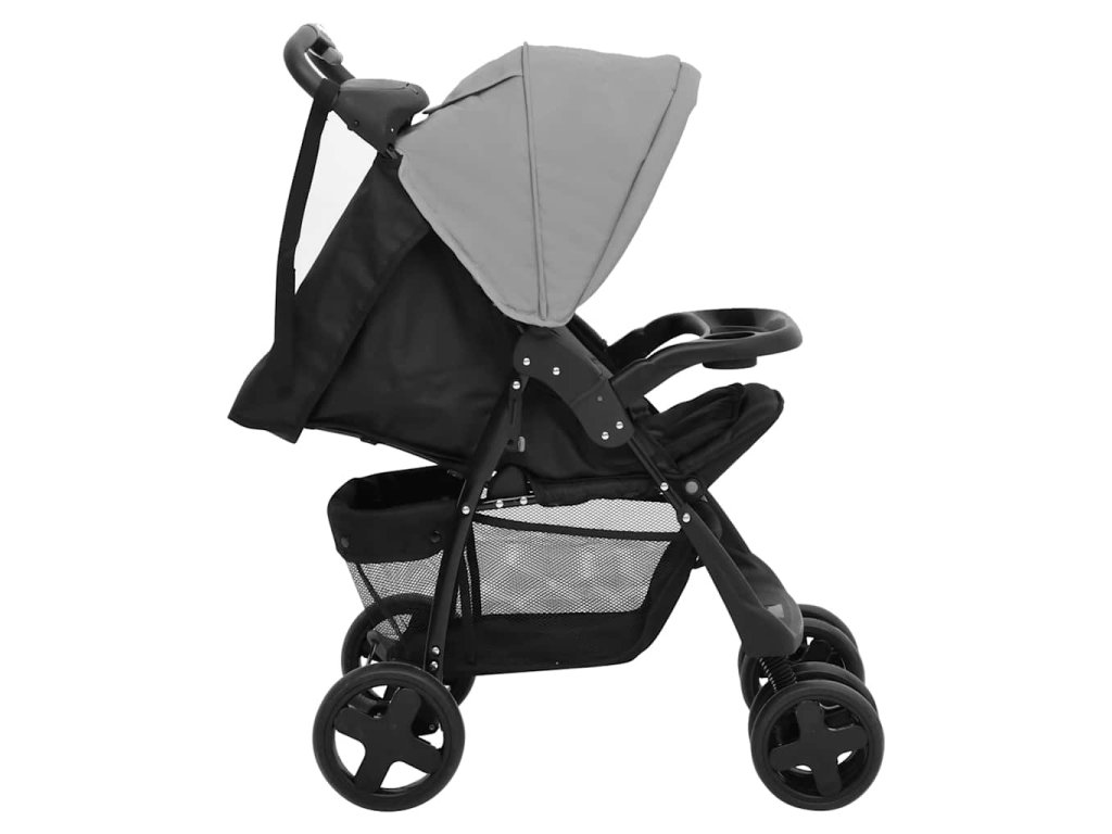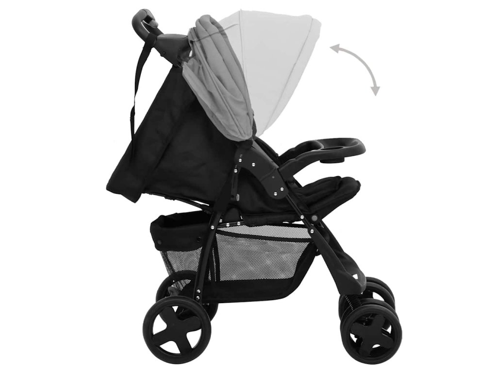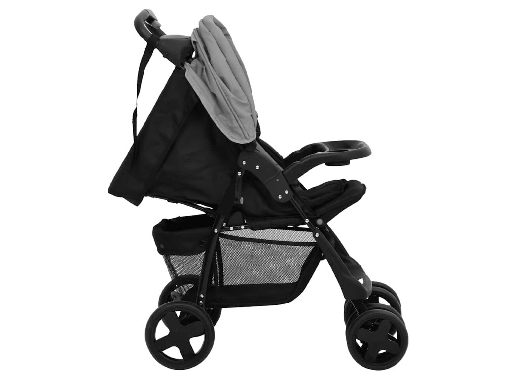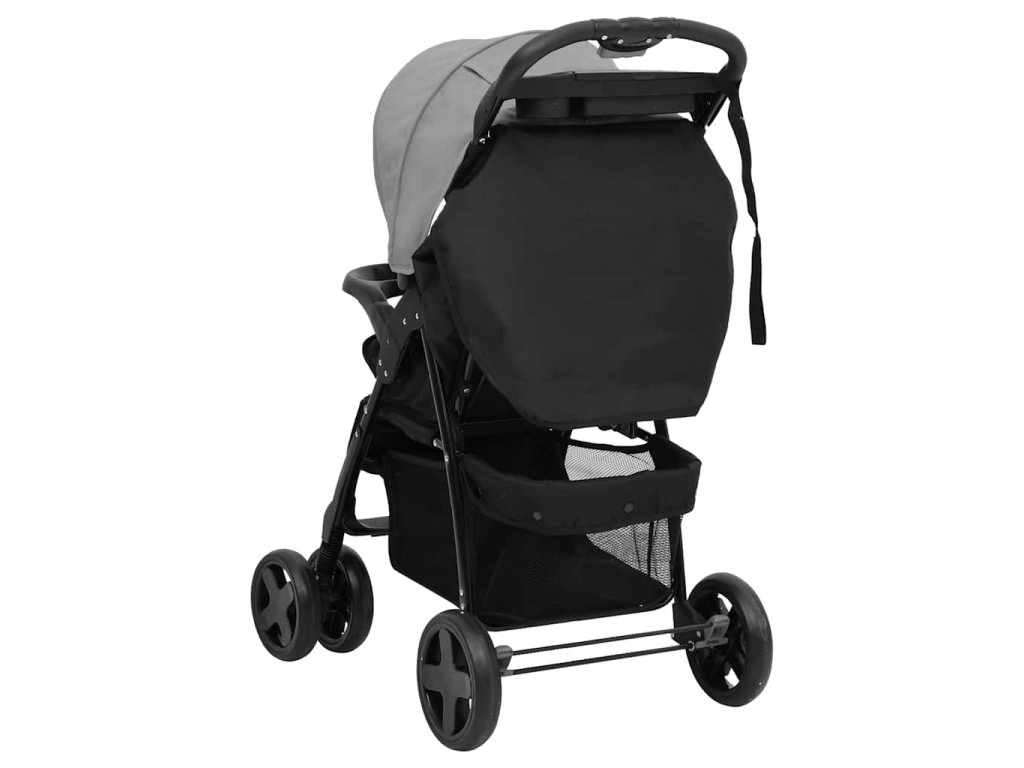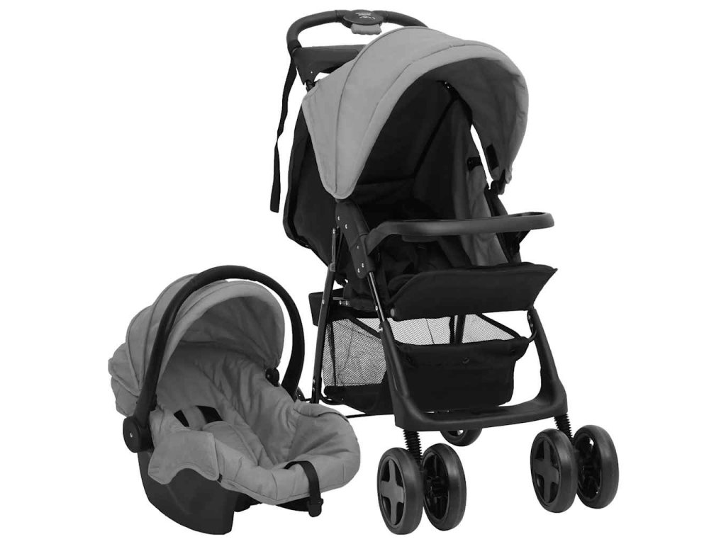 Dětský kočárek 3 v 1 světle šedý a černý ocel