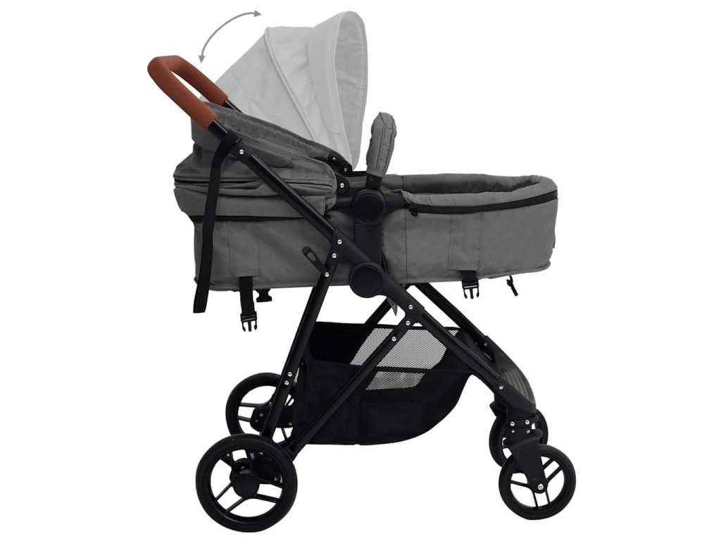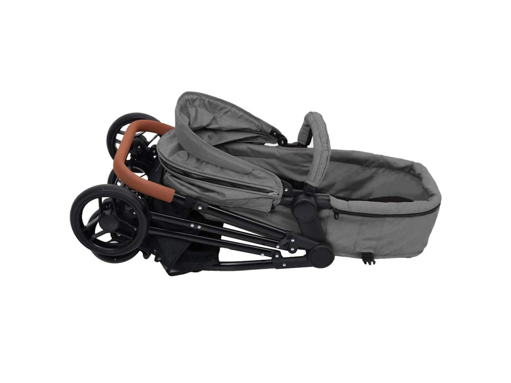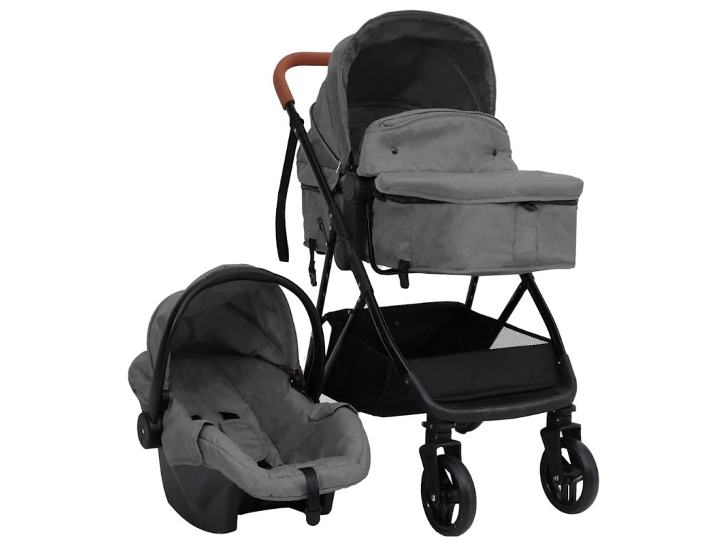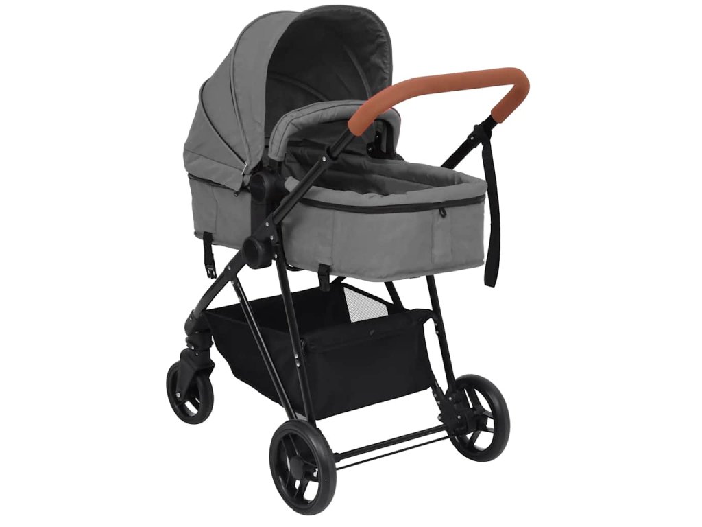 Dětský kočárek 3 v 1 světle šedý a černý ocel