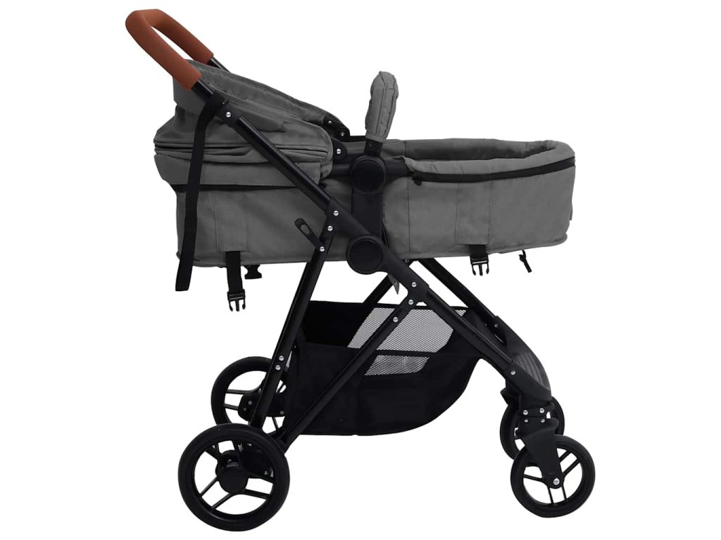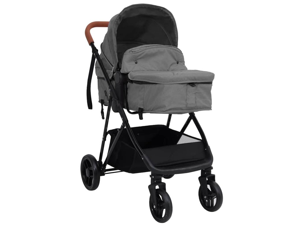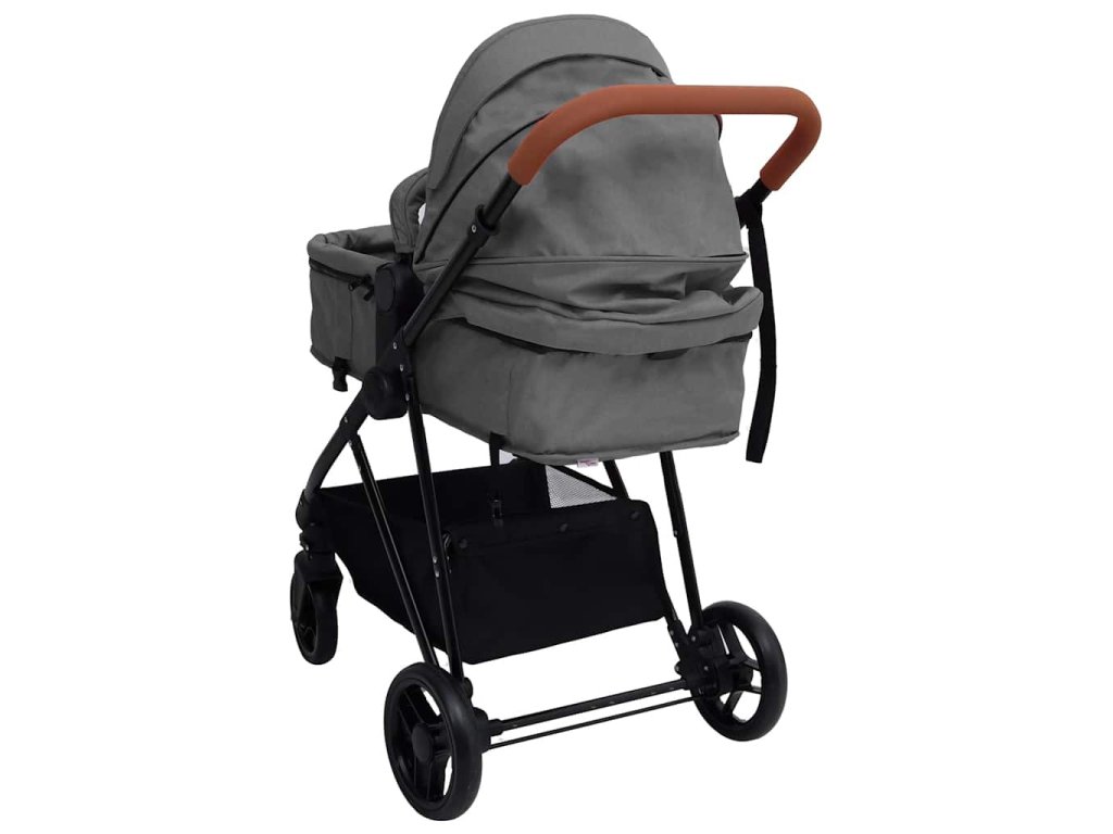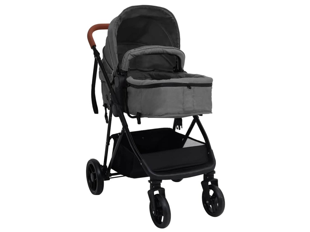 Dětský kočárek 3 v 1 světle šedý a černý ocel