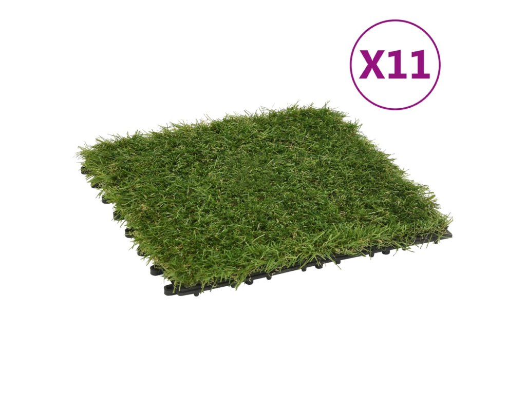 Dlaždice s umělou trávou 11 ks zelené 30 x 30 cm