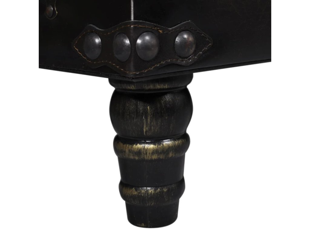 - Přezky a kovové zámky, které lavici dodávají starobylý vzhled