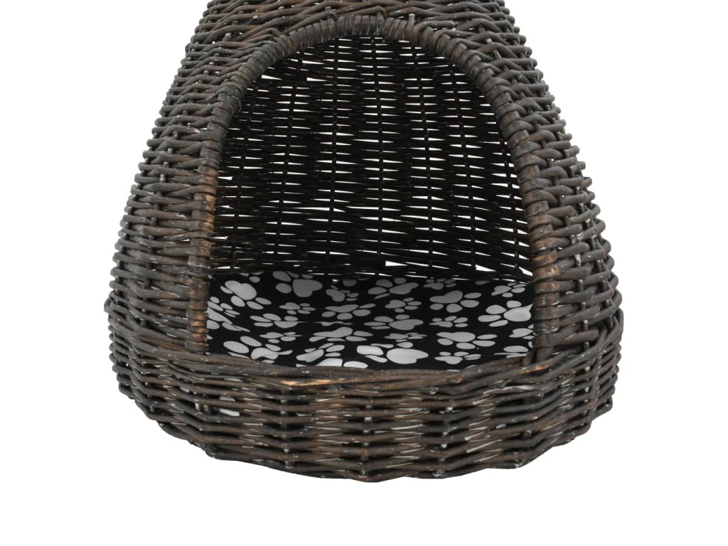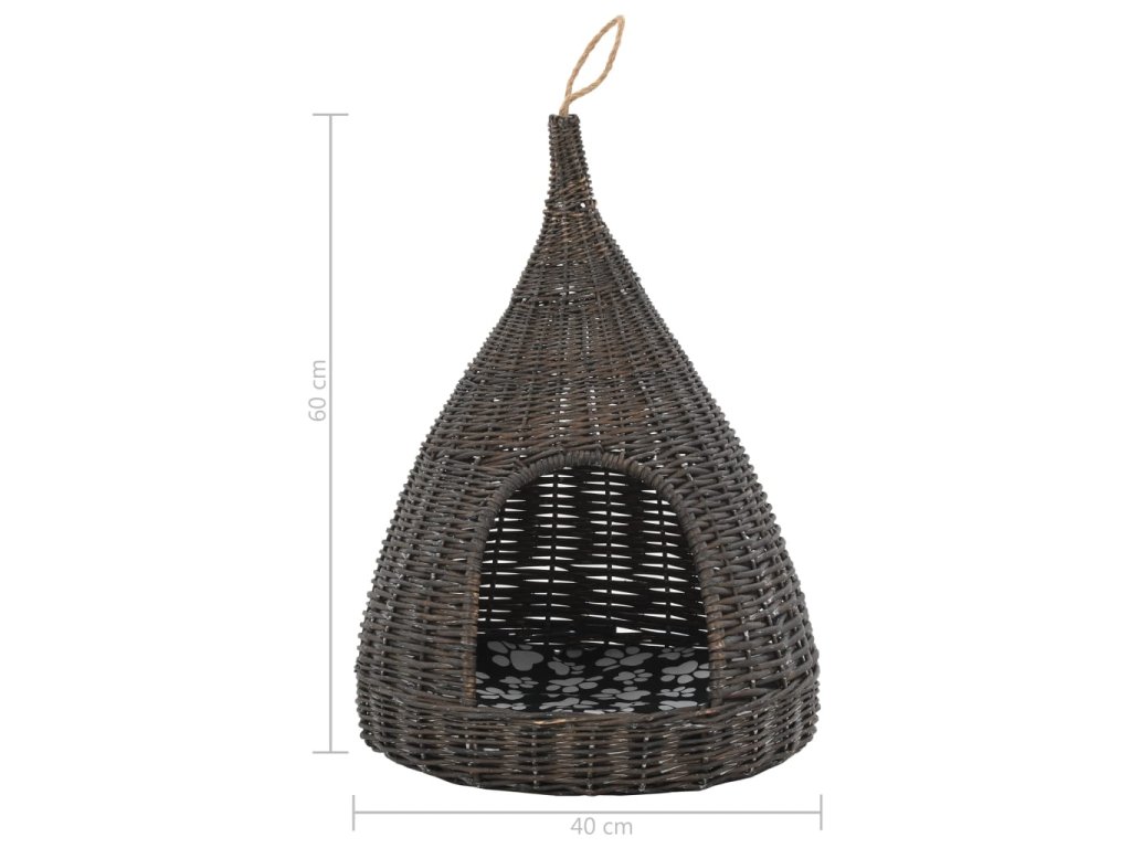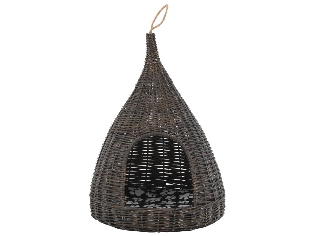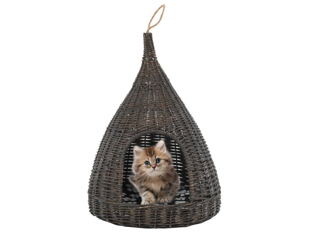 Domeček pro kočky s poduškou šedý 40 x 60 cm přírodní vrba týpí