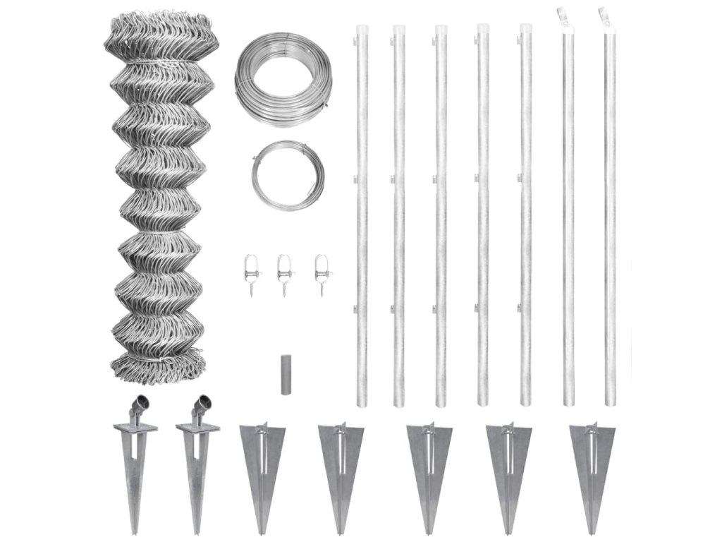 Veškeré potřebné montážní příslušenství je součástí balení! Balení obsahuje 1 roli pozinkovaného pletiva, 5 pozinkovaných plotových sloupků, 5 pozinkovaných kotevních kolíků por sloupky, 2 pozinkované plotové vzpěry, 2 pozinkované kotevní kolíky pro vzpěry, 1 napínací drát, 1 vázací drát a 3 napínáky drátů.