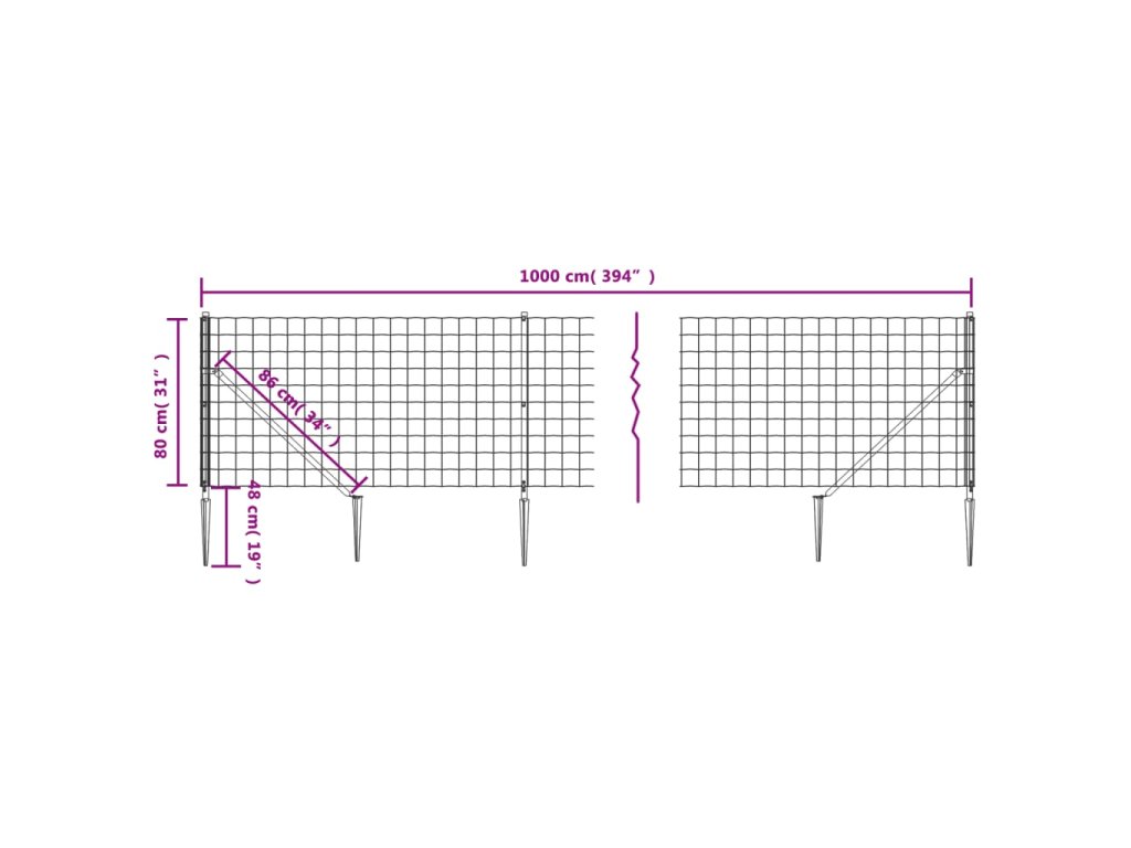 Drátěný plot s kotevními hroty zelený 0,8 x 10 m