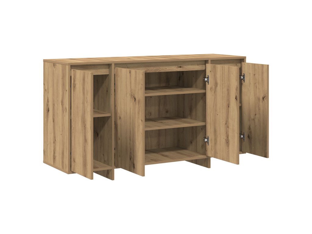 - Odolná konstrukce z inženýrského dřeva Tento příborník je pevně postavený s policemi vyrobenými z inženýrského dřeva, což zajišťuje jeho dlouhou životnost. Hladký povrch odolný proti deformacím ho činí ideálním pro každodenní použití. Snadno se přizpůsobí různým interiérovým stylům.