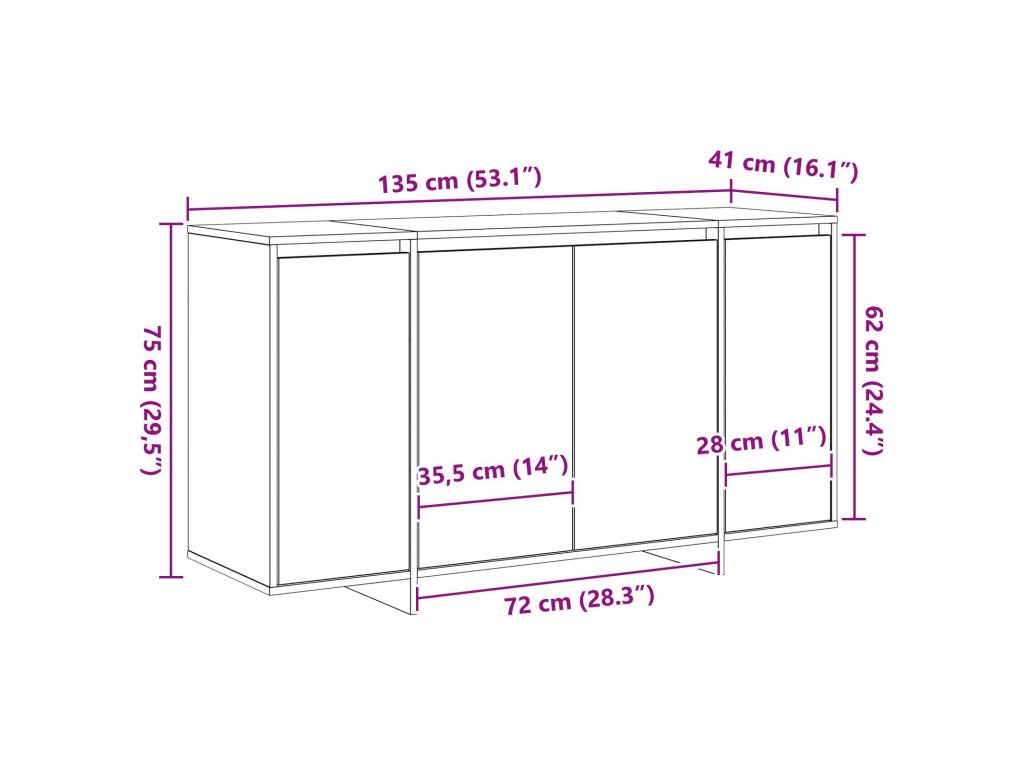 Servírovací skříň Artisanový dub 135 x 41 x 75 cm