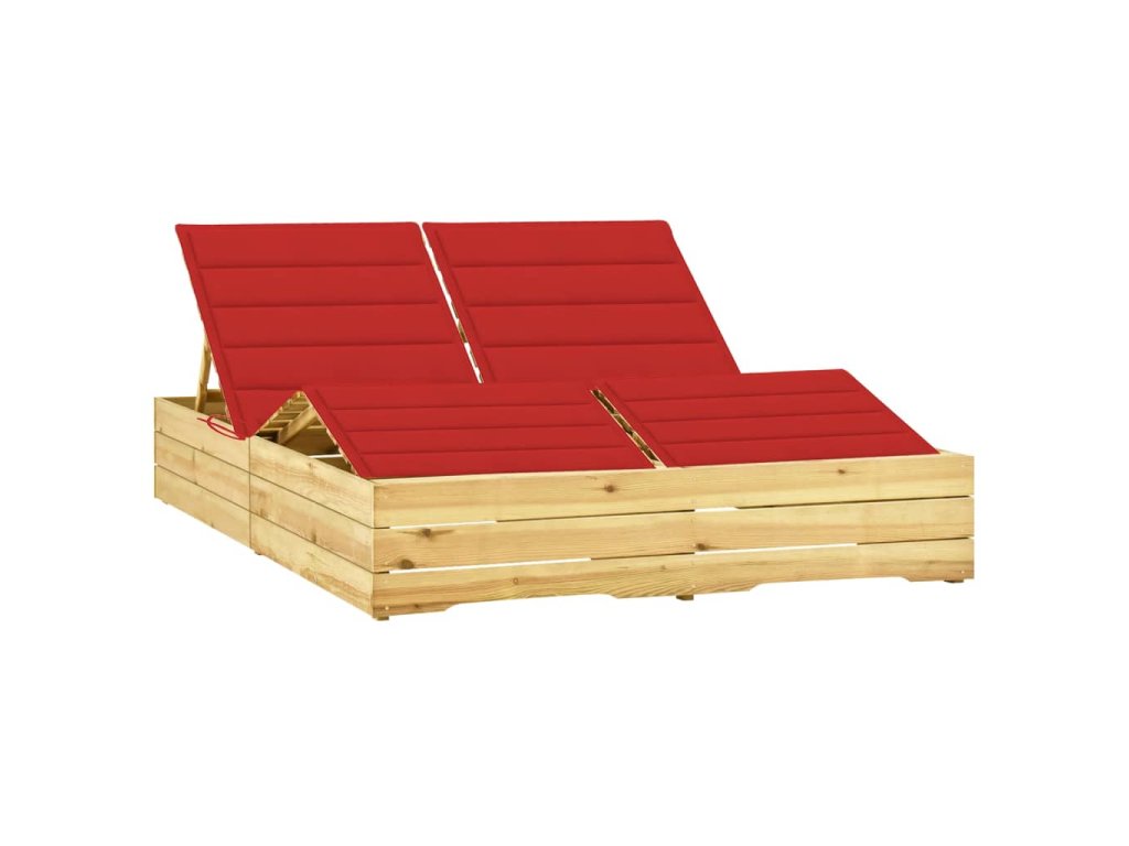Dvojité lehátko s červenými poduškami impregnovaná borovice