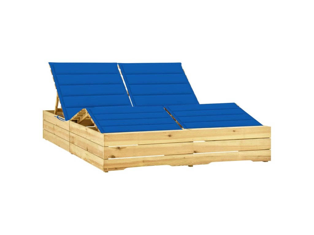 Dvojité lehátko s modrými poduškami impregnovaná borovice