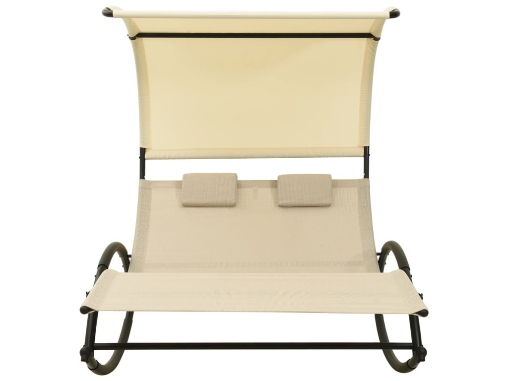 Dvojité zahradní lehátko s baldachýnem textilen krémové