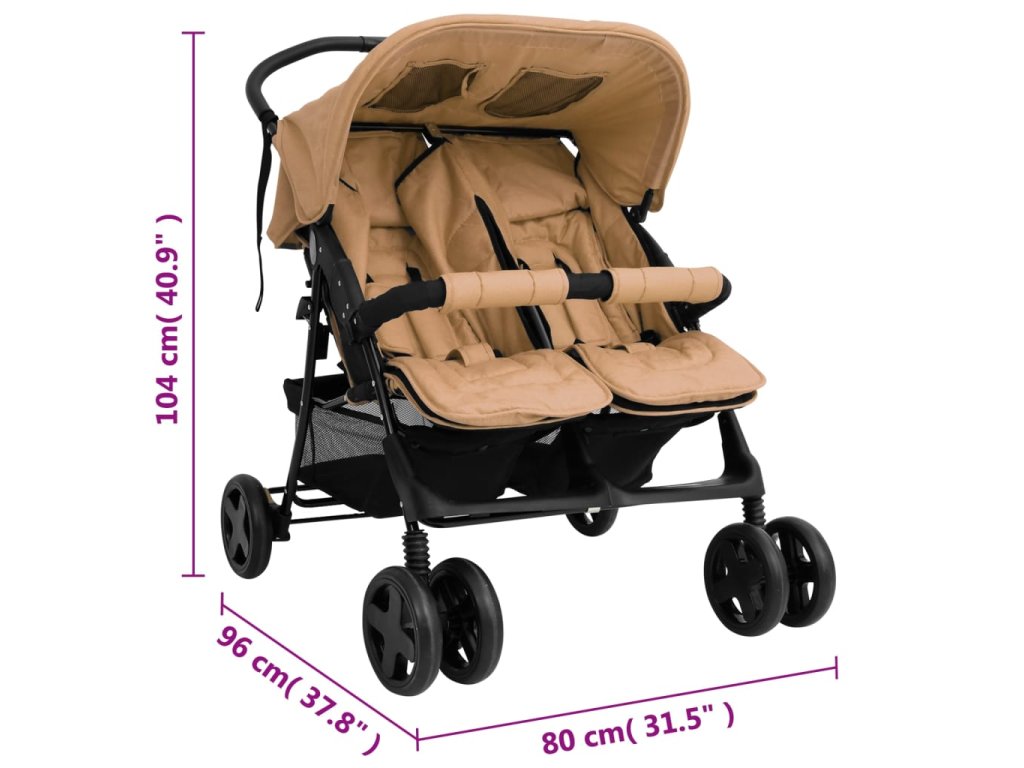 Tento útulný kočárek pro dvojčata je ideální na procházky, výlety nebo nákupy.