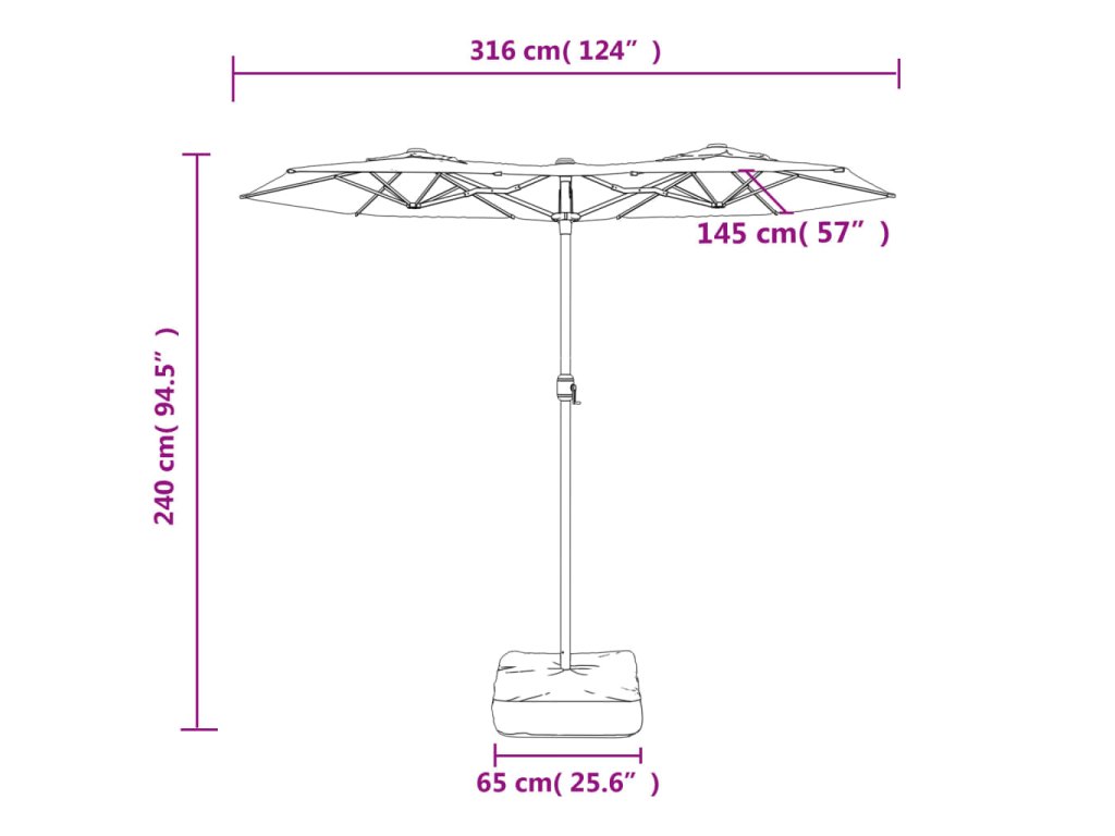 Tento elegantní dvojitý zahradní slunečník s LED diodami vám poskytne stín, a ochrání vás tak před sluníčkem a jeho škodlivým UV zářením.