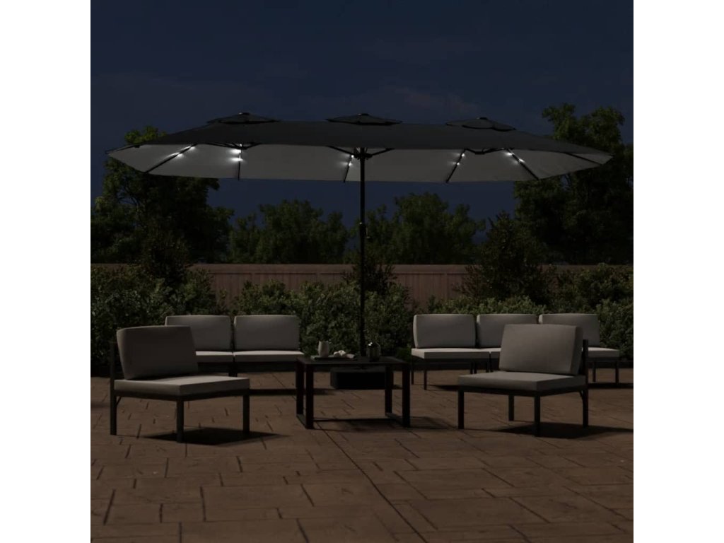 Tento elegantní dvojitý zahradní slunečník s LED diodami vám poskytne stín, a ochrání vás tak před sluníčkem a jeho škodlivým UV zářením.