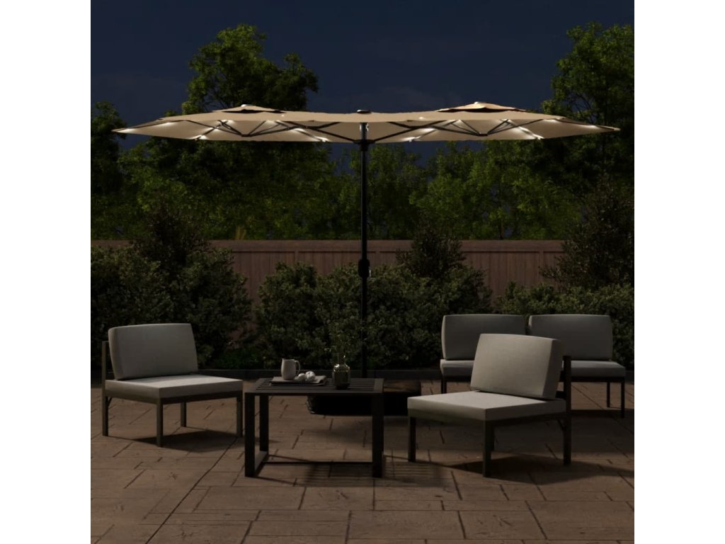 Tento elegantní dvojitý zahradní slunečník s LED diodami vám poskytne stín, a ochrání vás tak před sluníčkem a jeho škodlivým UV zářením.